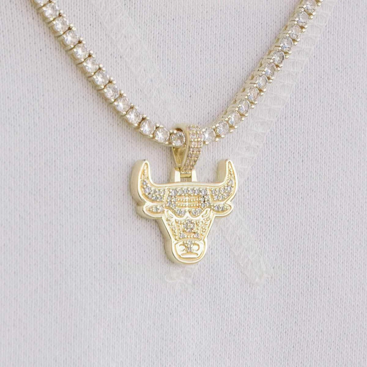 GLD has teamed up with the NBA to introduce the official NBA Team Pendants. This piece was meticulously crafted with white and clear hand-set stones to accurately depict the iconic logo of the Chicago Bulls. Flex this NBA season with the official pendant of the Chicago Bulls.