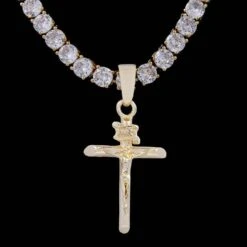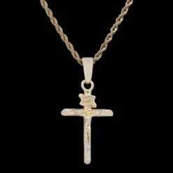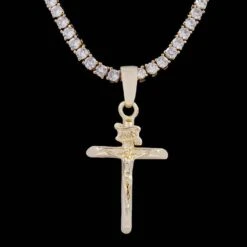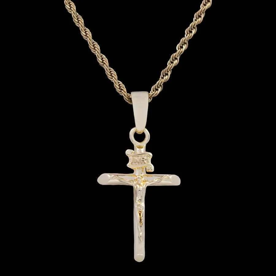 Rock the GLD “Golden Crucifix” pendant solo for a subtle drip or stacked as a statement piece.