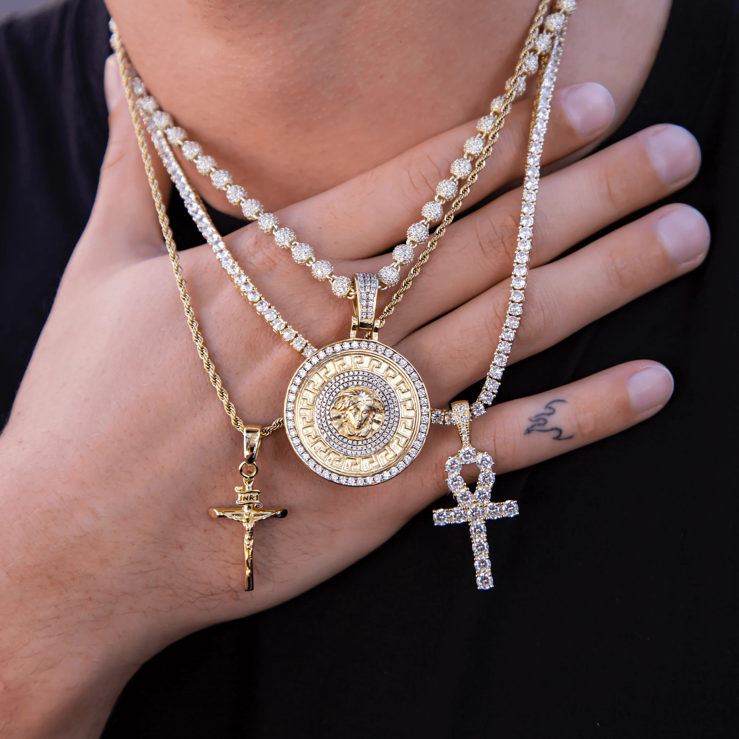 Worn stacked or solo, the “Medusa” pendant is the perfect piece to accentuate any fit.