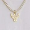 Introducing our “Micro Iced Hamsah Pendant in Yellow Gold” , this pendant has the Hamsah turned down which symbolizes the welcoming of blessings. This piece is fully iced out with a statement stone right on the center of the eye. Style this piece with our “4mm Rope Chain In Yellow Gold” for the perfect pair!