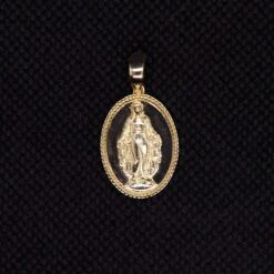 This micro pendant depicts the Lady of Guadalupe the patroness of the Americas and Mexico. A powerful symbol of faith that you can rock with any fit.