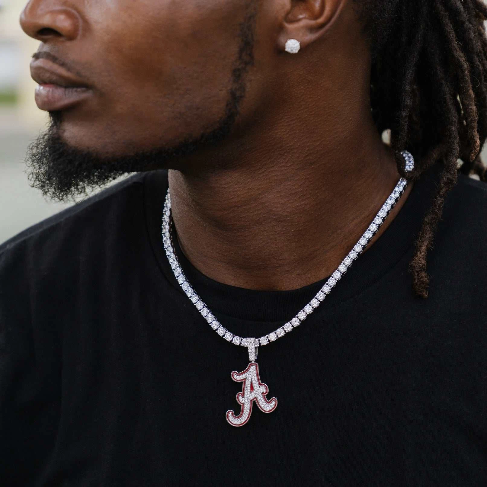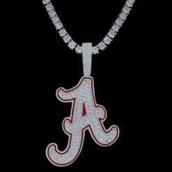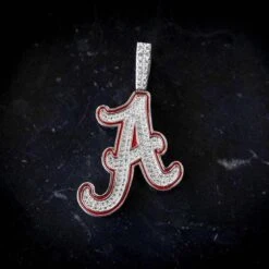 GLD has teamed up with the National Collegiate Athletic Association to introduce the official NCAA Team Pendants. This piece was meticulously crafted with hand-set stones and red enamel to accurately depict the logo of the University of Alabama football team. Flex this season with the official pendant of the Alabama Crimson Tide!
