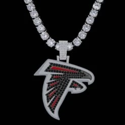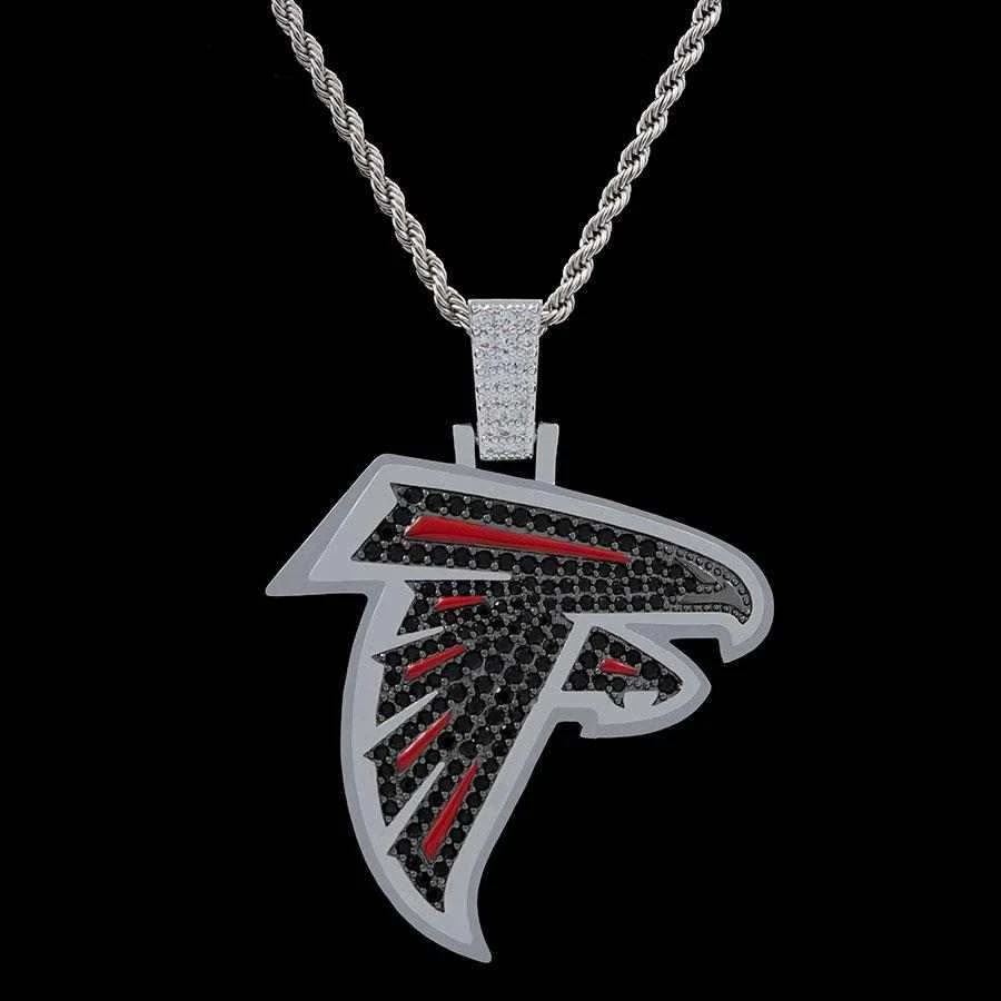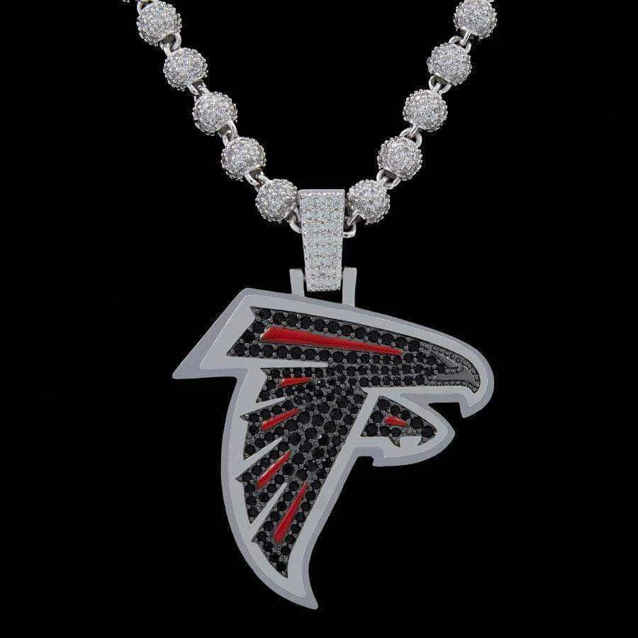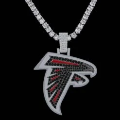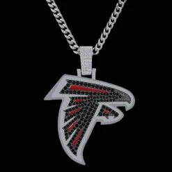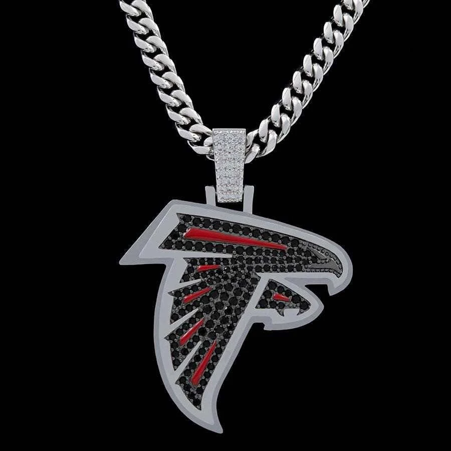 GLD has teamed up with the National Football League to introduce the official NFL Team Pendants. This piece was meticulously crafted with black hand-set stones and red enamel to accurately depict the logo of the Falcons. Flex this NFL season with the official pendant of the Atlanta Falcons.