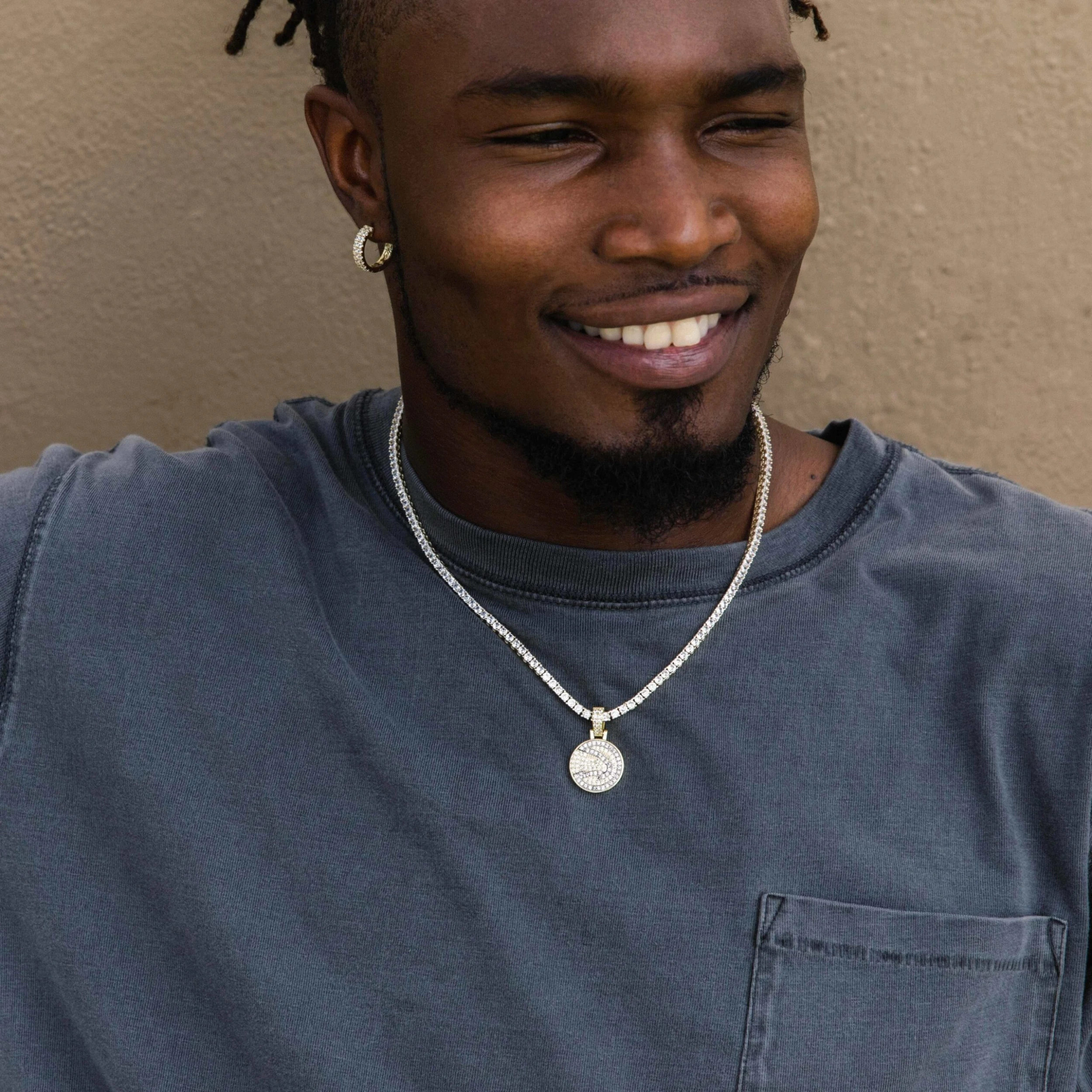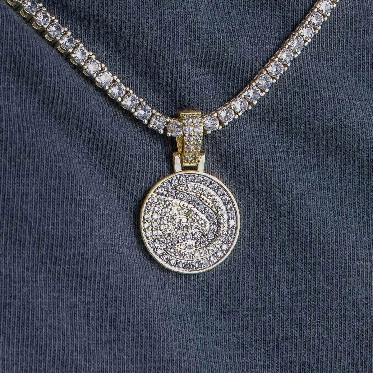 GLD has teamed up with the NBA to introduce the official NBA Team Pendants. This piece was meticulously crafted with white and clear hand-set stones to accurately depict the iconic logo of the Atlanta Hawks. Flex this NBA season with the official pendant of the Atlanta Hawks.