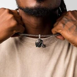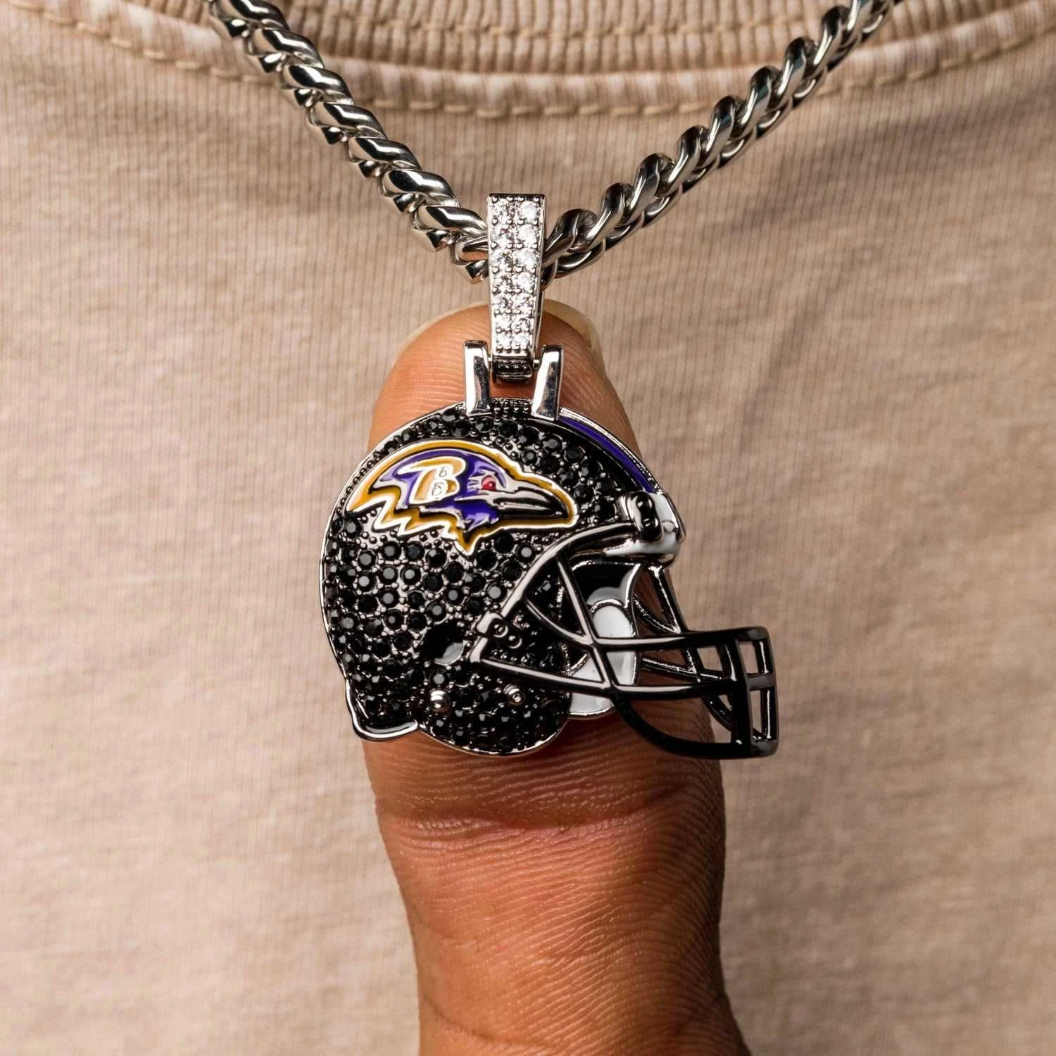 GLD has teamed up with the National Football League to introduce the official NFL Team Helmet Pendants. This piece was meticulously crafted with black hand-set stones and multicolored enamel to accurately depict the helmets of the Ravens. Flex this NFL season with the official pendant of the Baltimore Ravens!