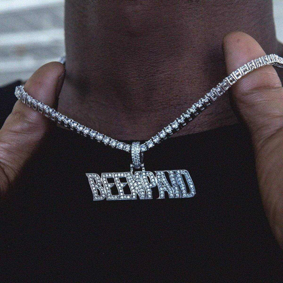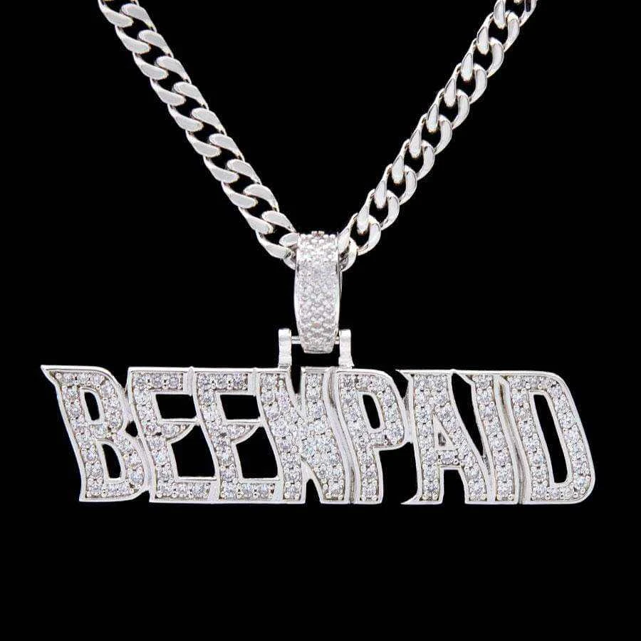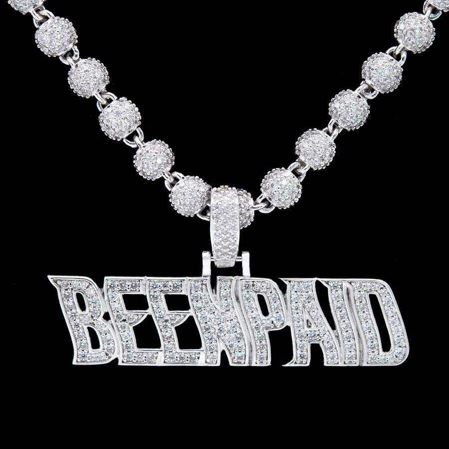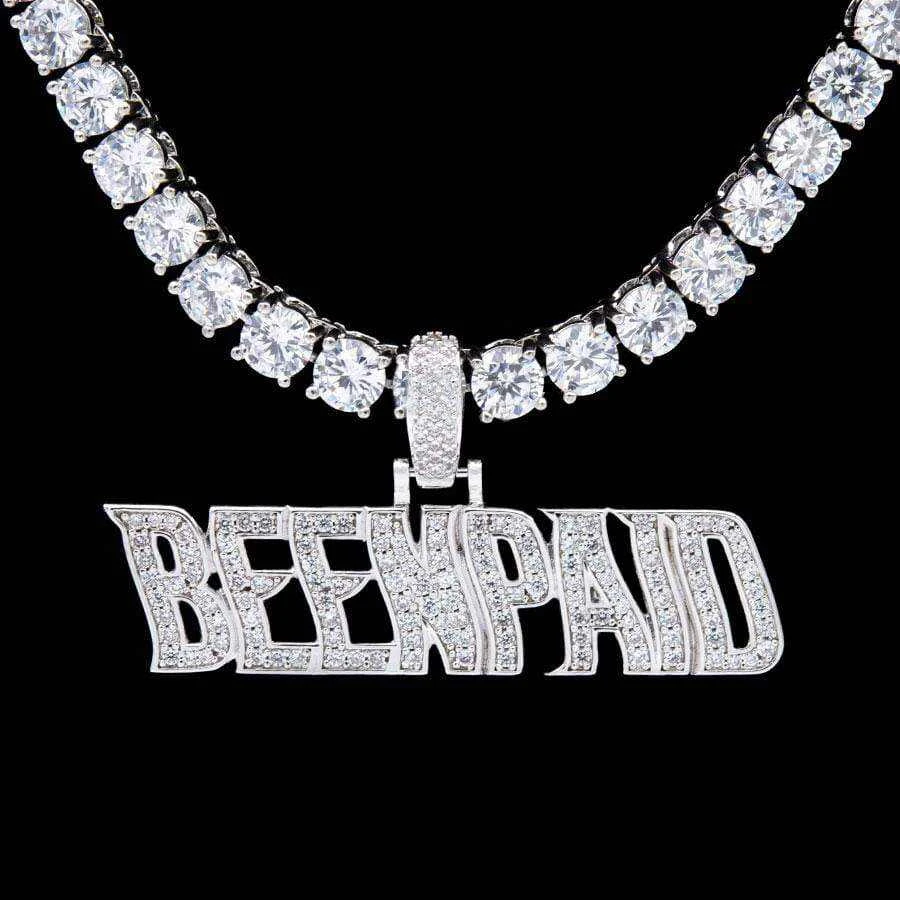 Flooded in handset flawless lab stones, GLD’s “Been Paid” pendant is a statement piece with a statement made to flex.
