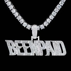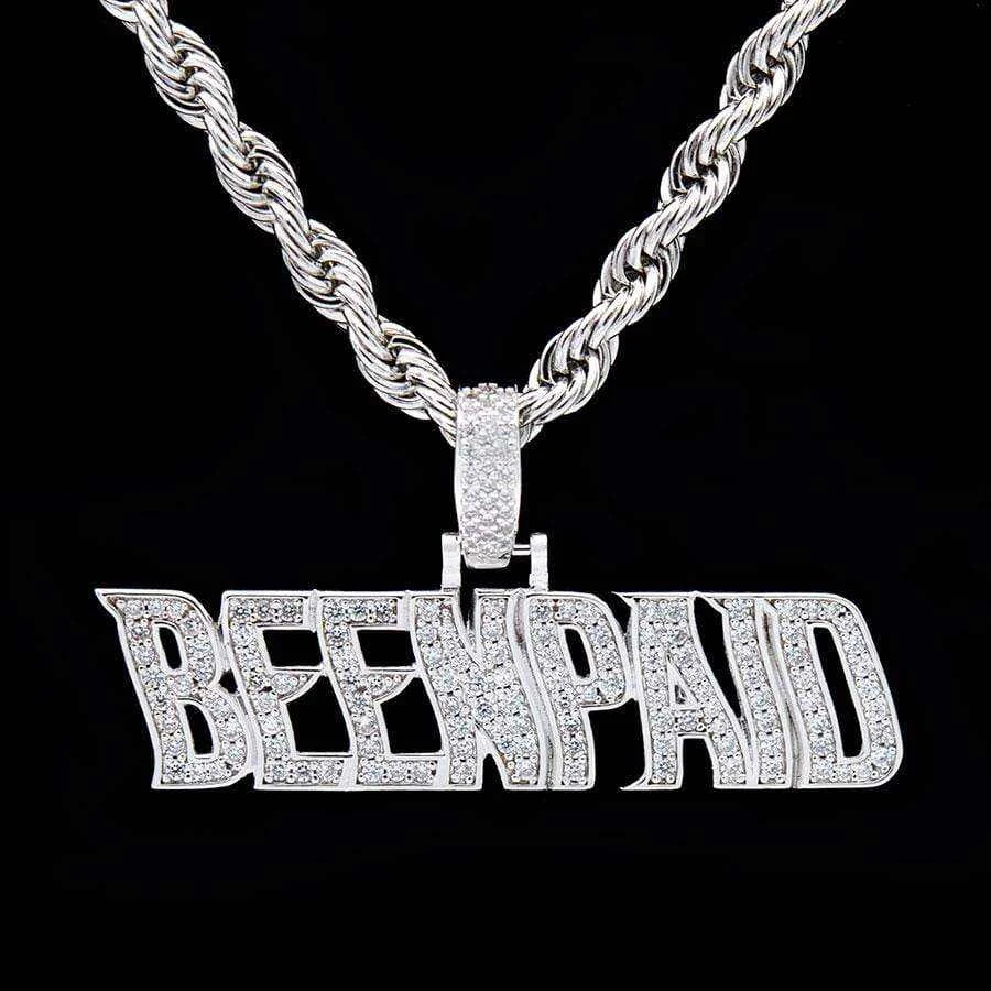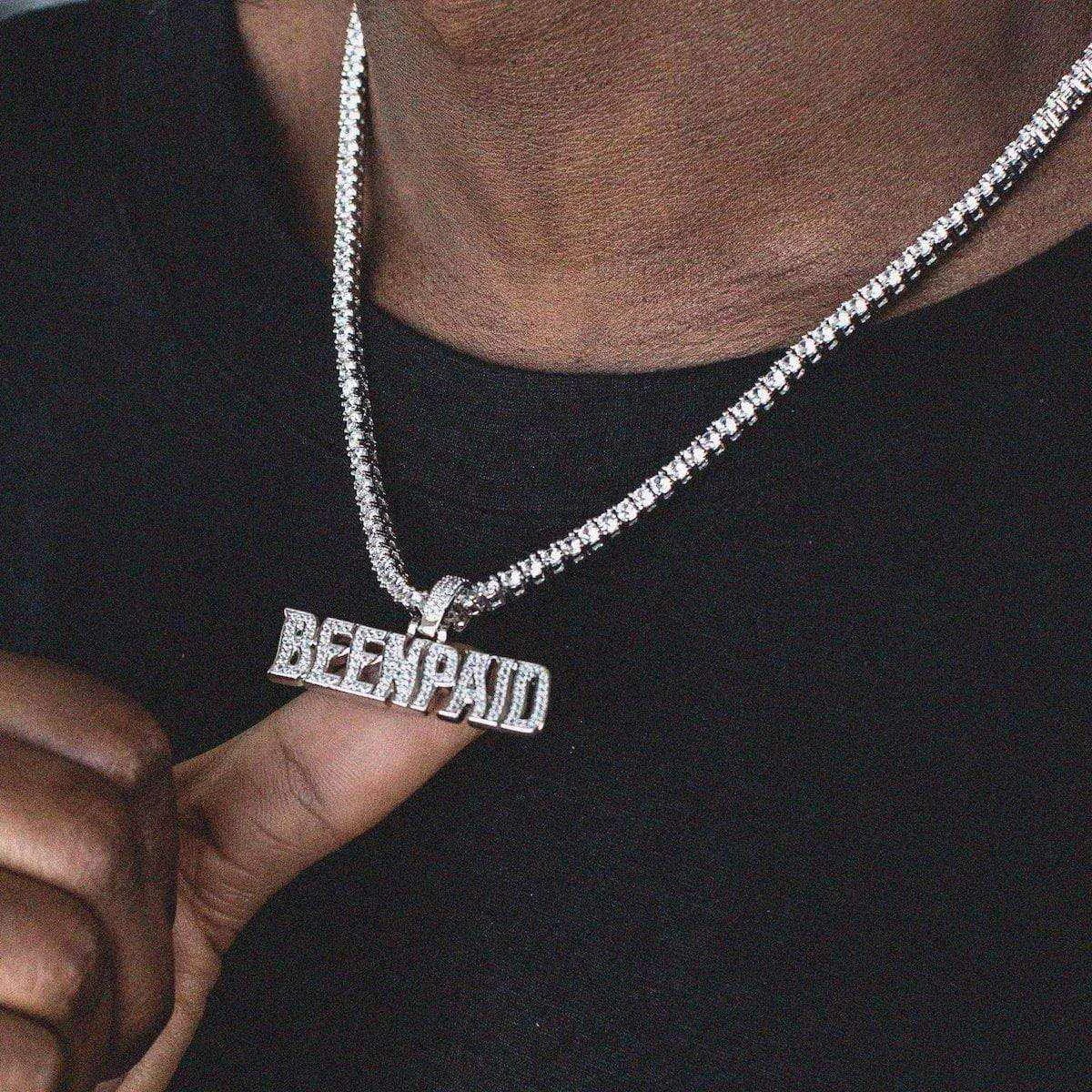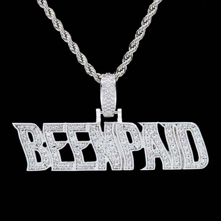 Flooded in handset flawless lab stones, GLD’s “Been Paid” pendant is a statement piece with a statement made to flex.
