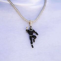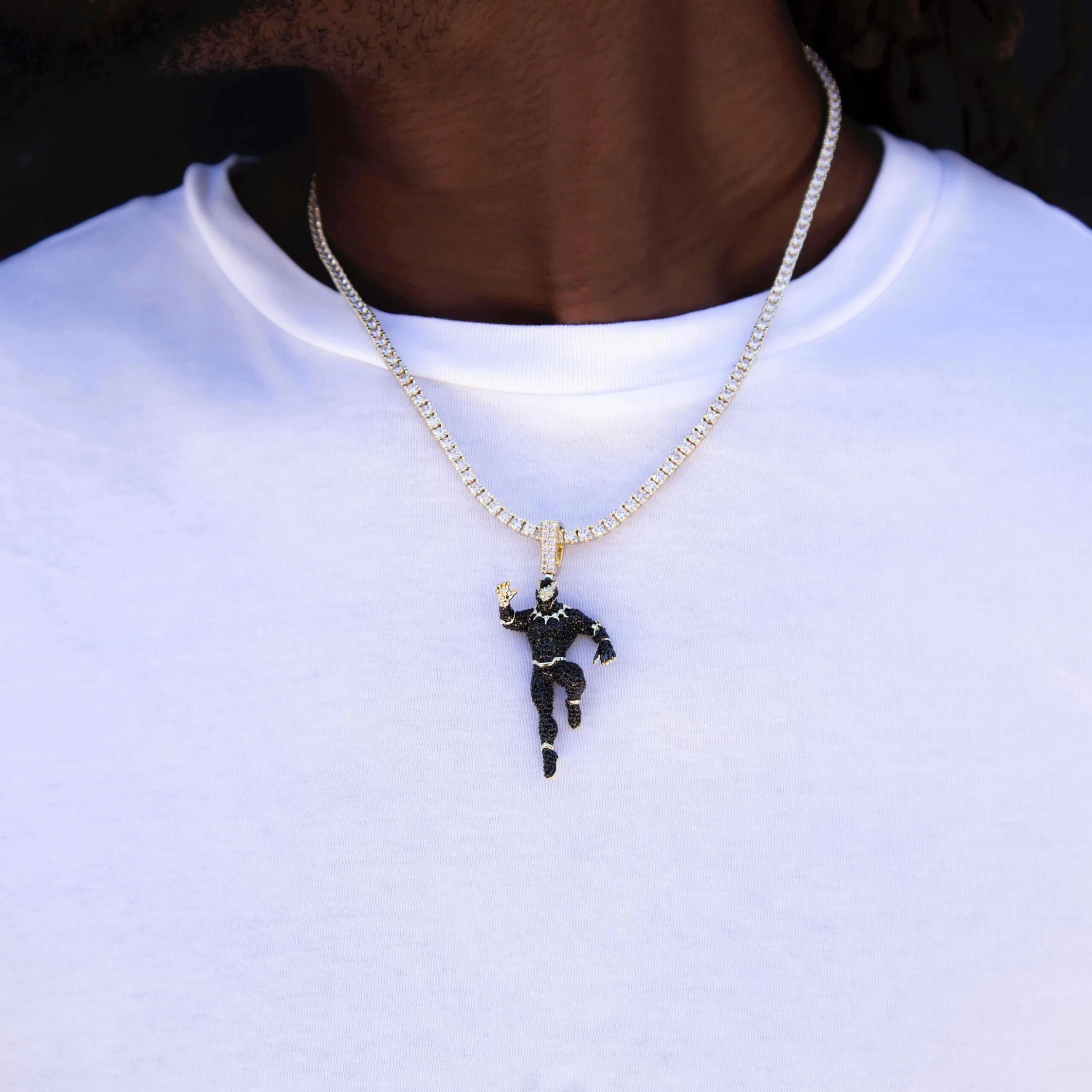Introducing the Official pendants of the MARVEL Universe. This iconic piece is fit for a true king. Flooded in hand-set black round cut stones, finished in 18k Gold Plating, this pendant is crafted to accurately depict Black Panther himself. Honor the spirit of “Wakanda Forever!” with the official Black Panther Pendant.