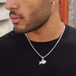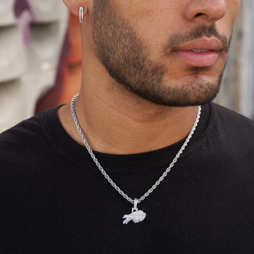 GLD has teamed up with the National Football League to introduce the official NFL Micro Logo Pendants. This piece was meticulously crafted with 14k white gold and clear hand-set stones to accurately depict the logo of the Buffalo Bills. Flex this NFL season with the official pendant of the Buffalo Bills.