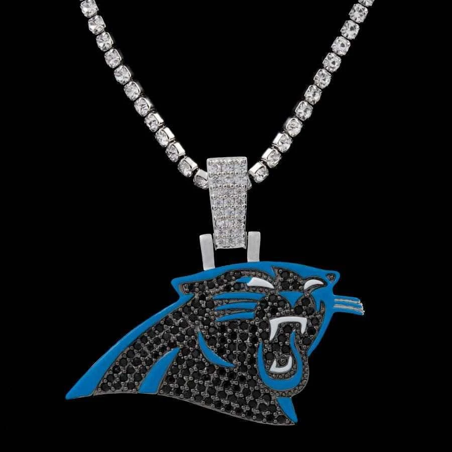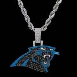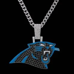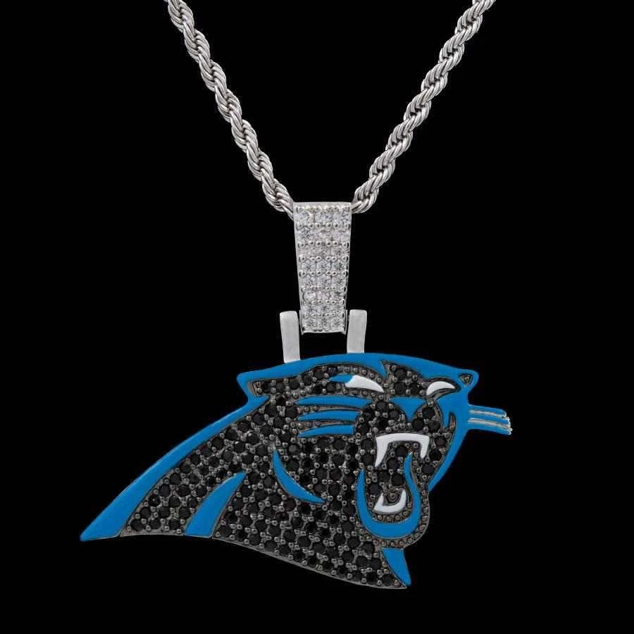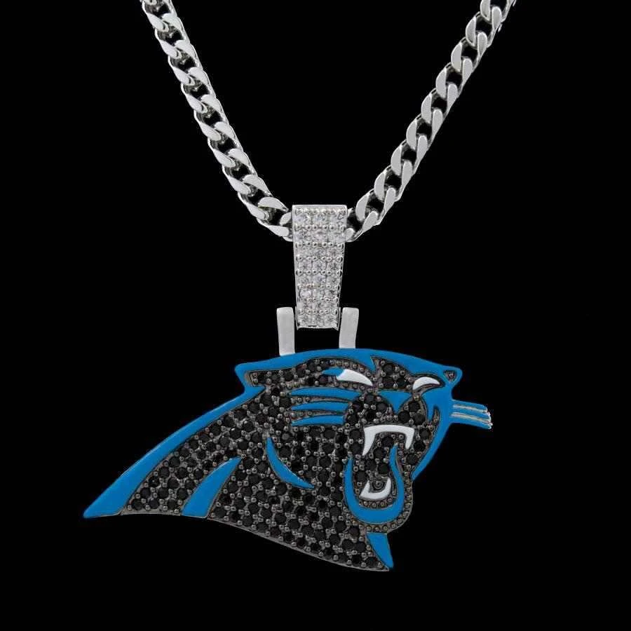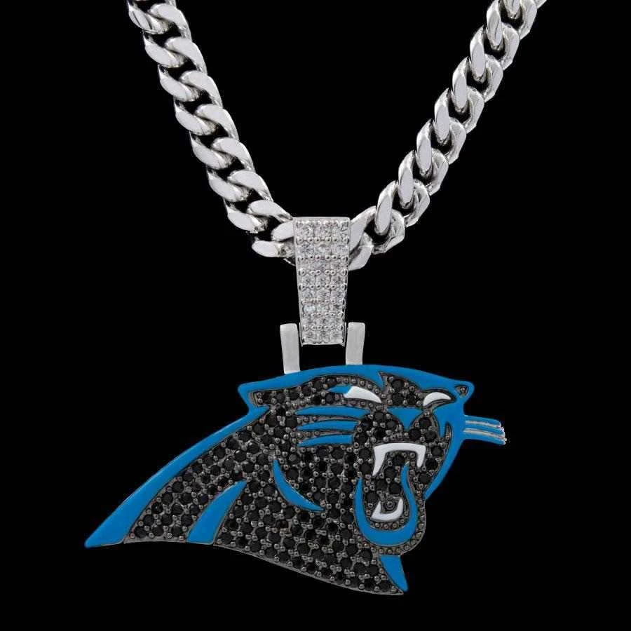 GLD has teamed up with the National Football League to introduce the official NFL Team Pendants. This piece was meticulously crafted with black hand-set stones and blue enamel to accurately depict the iconic logo of the Carolina Panthers. Boss up and rep your squad!