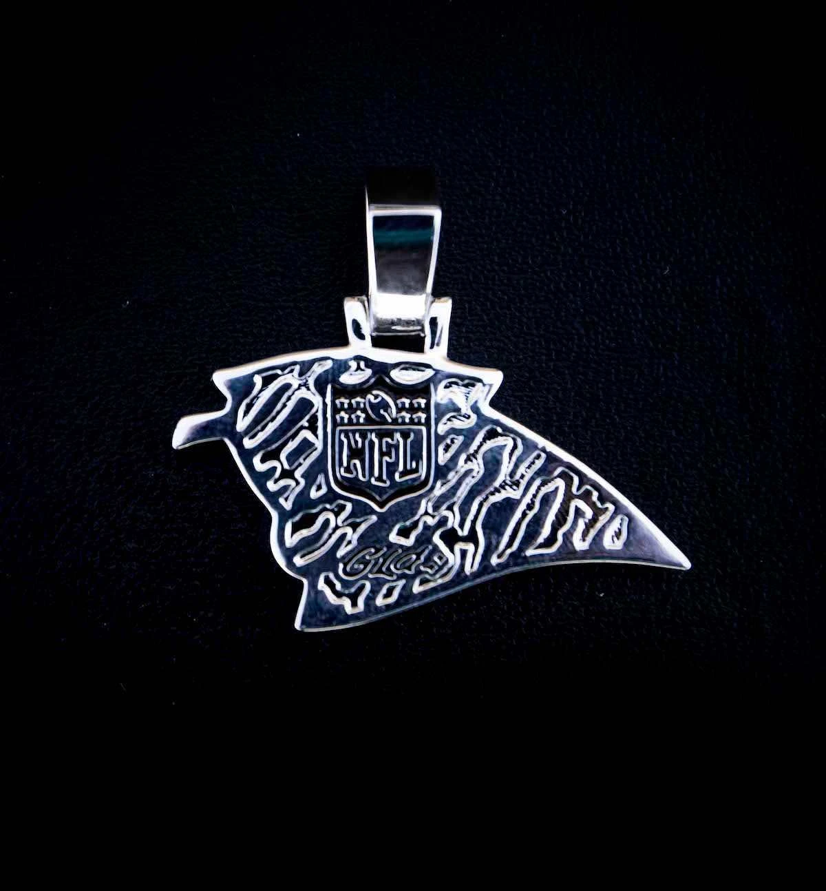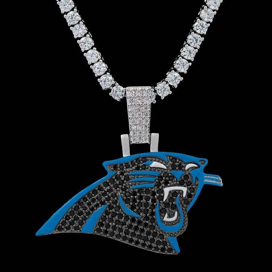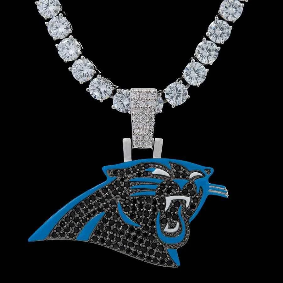 GLD has teamed up with the National Football League to introduce the official NFL Team Pendants. This piece was meticulously crafted with black hand-set stones and blue enamel to accurately depict the iconic logo of the Carolina Panthers. Boss up and rep your squad!