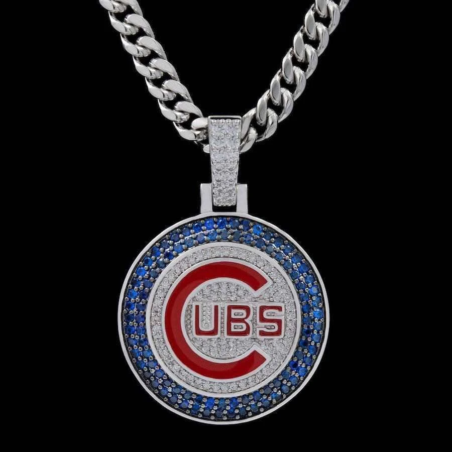 GLD has teamed up with the MLB to introduce the official MLB Team Pendants. This piece was meticulously crafted with blue and clear hand-set stones to accurately depict the logo of the Chicago Cubs. Rep your squad with the official logo pendant of the Chicago Cubs!
