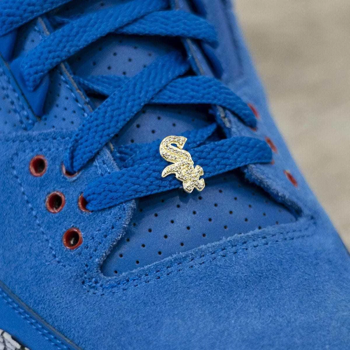 GLD has teamed up with Major League Baseball to introduce official MLB Team Shoelace Charms. Finished in 18k gold plating, this piece was meticulously crafted with hand-set clear stones to accurately depict the iconic logo of the Chicago White Sox. Boss up and celebrate your squad with the official pendant of the White Sox!