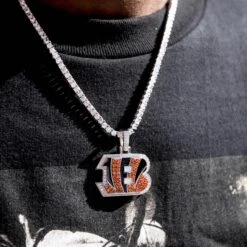 GLD has teamed up with the National Football League to introduce the official NFL Team Pendants. This piece was meticulously crafted with red hand-set stones and black enamel to accurately depict the logo of the Bengals. Flex this NFL season with the official pendant of the Cincinnati Bengals.