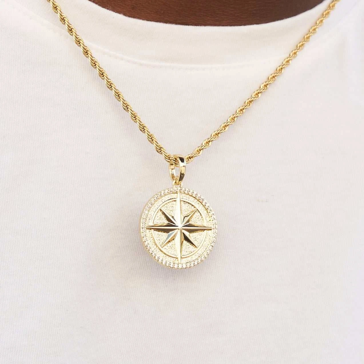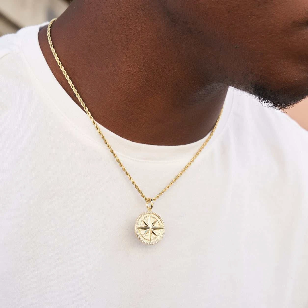 Introducing the Compass Coin Pendant in Yellow gold, a great addition to your chain. This 18k Gold Plated pendant features a polished compass in the center and a textured coin base. If you want to experience new places and are in a phase of exploration, let this pendant guide your adventure. Paired with the 2mm Rope Chain, they make a perfect combo!