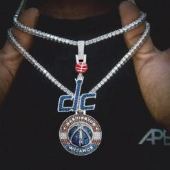GLD has teamed up with the NBA to introduce the official NBA City Collection. This piece was meticulously crafted with blue hand-set stones to accurately depict the city of this storied franchise. Flex this NBA season with the official pendant of your Washington Wizards.