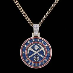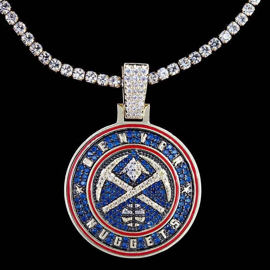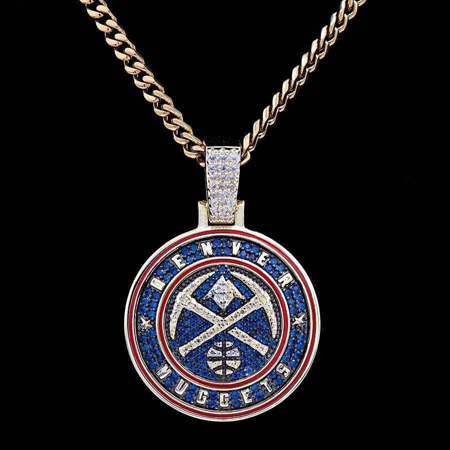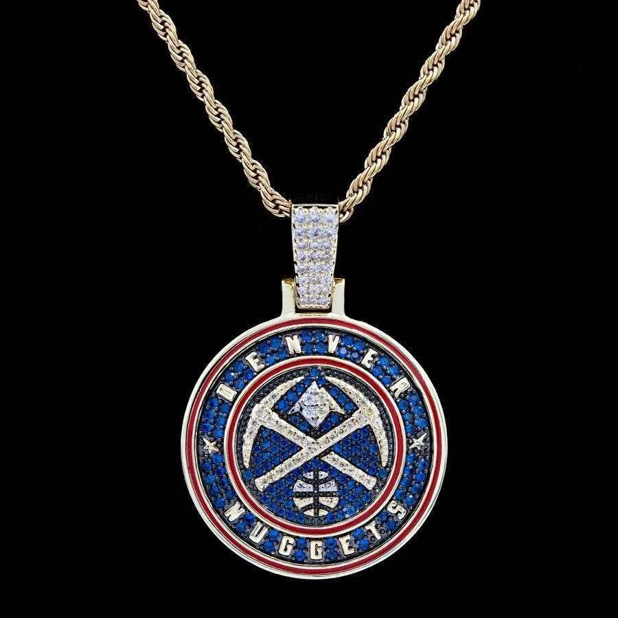 GLD has teamed up with the NBA to introduce the official NBA Team Pendants. This piece was meticulously crafted with blue hand-set stones and red enamel to accurately depict the logo of this storied franchise. Flex this NBA season with the official pendant of your Denver Nuggets.
