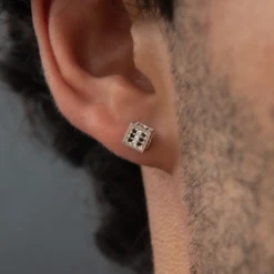 Time to up your game with the Dice Stud Earrings in 14k White Gold! These earrings feature a set of iced dice finished in hand-set stones, intended to make a statement. Pair these with the Iced Dice Pendant and a 5mm Tennis Chain for a bold set. With these exclusive studs your style game will always be a winning roll!