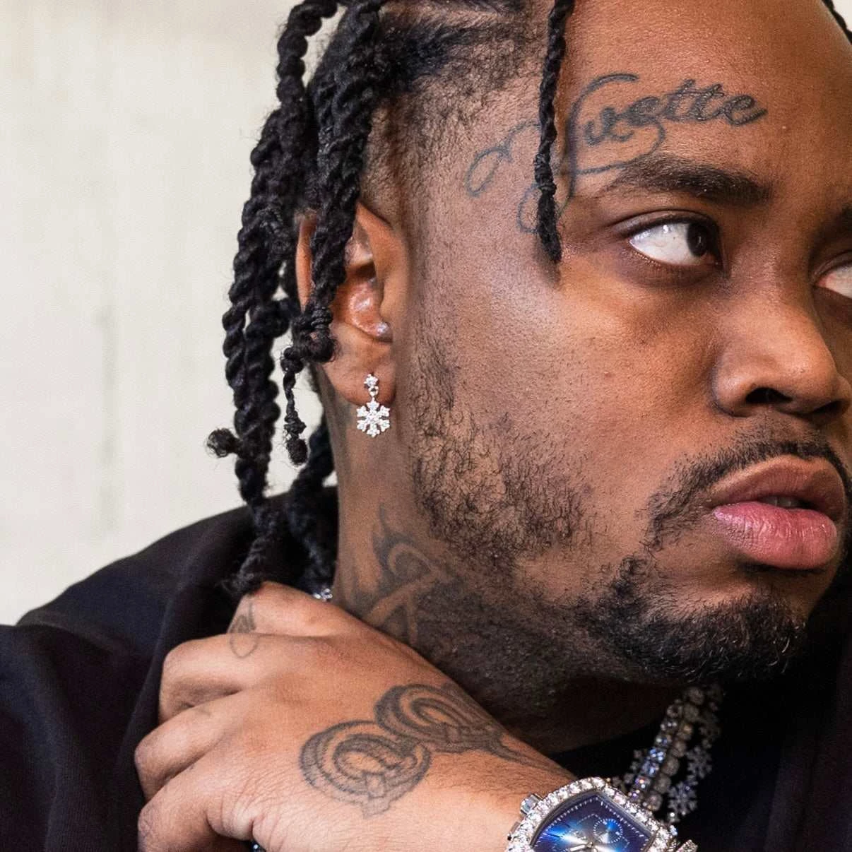 Introducing the Fivio Snowflake Drop Stud Earrings, a Limited Edition piece designed in conjunction with Fivio Foreign, the Brooklyn-based rapper. Best known for his single “Big Drip,” you can now rock the same piece as your favorite artist! These 14k White Gold earrings feature a fully iced-out snowflake hanging from the stud on a 14k solid gold post. Paired with the matching Fivio Snowflake Chain and Bracelet, they make the perfect set.