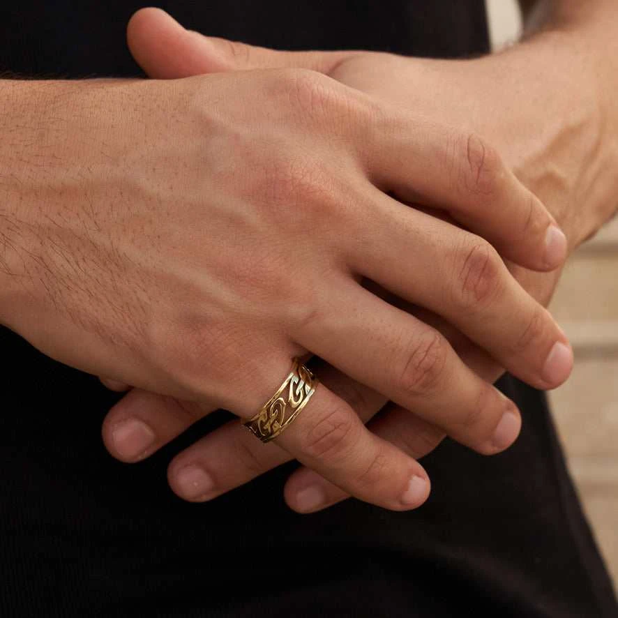 Introducing the GG Logo Ring, an original piece that can only be found at The GLD Shop. This 18k Gold Plated ring features the official GG monogram logo cutouts wrapping around the full band. Paired with the Miami Cuban Link bracelet, they make a perfect match!