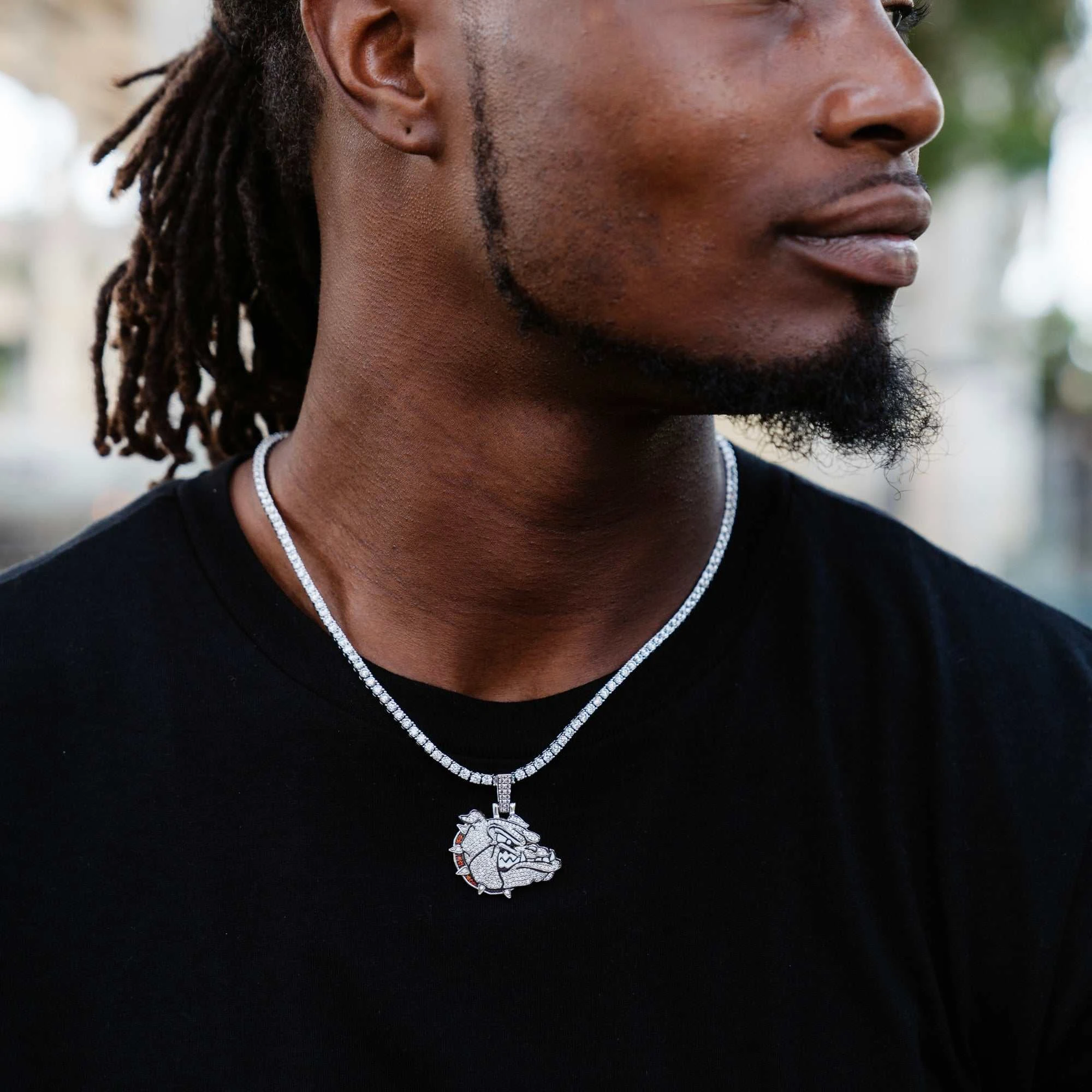 GLD has teamed up with the NCAA to introduce the official NCAA Team Pendants. This piece was meticulously crafted with clear and red hand-set stones to accurately depict the logo of the Gonzaga Bulldogs football team. Flex this season with the official Logo Pendant of your Gonzaga Bulldogs!