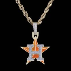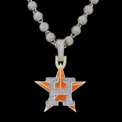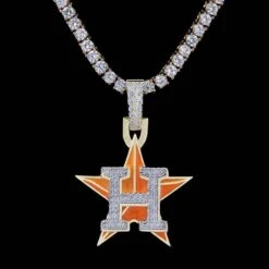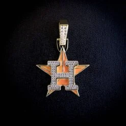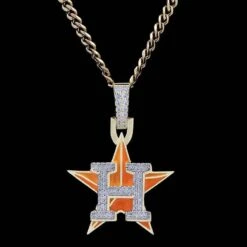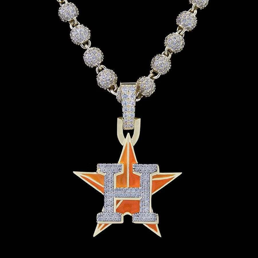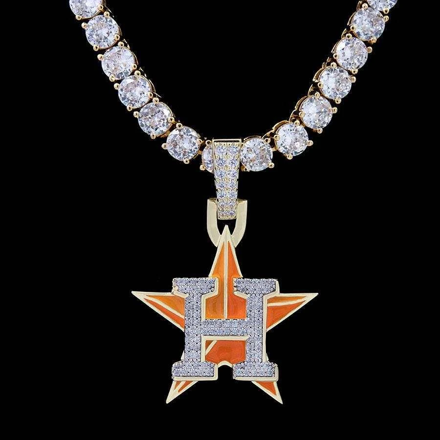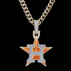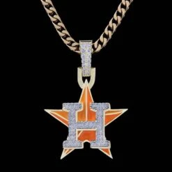 GLD has teamed up with Major League Baseball to introduce the official MLB Team Pendants. Finished in 18k gold plating, this piece was meticulously crafted with hand-set clear stones and orange enamel to accurately depict the iconic logo of the Houston Astros. Boss up and celebrate your squad with the official pendant of the Houston Astros!