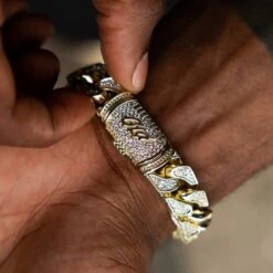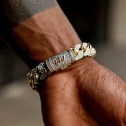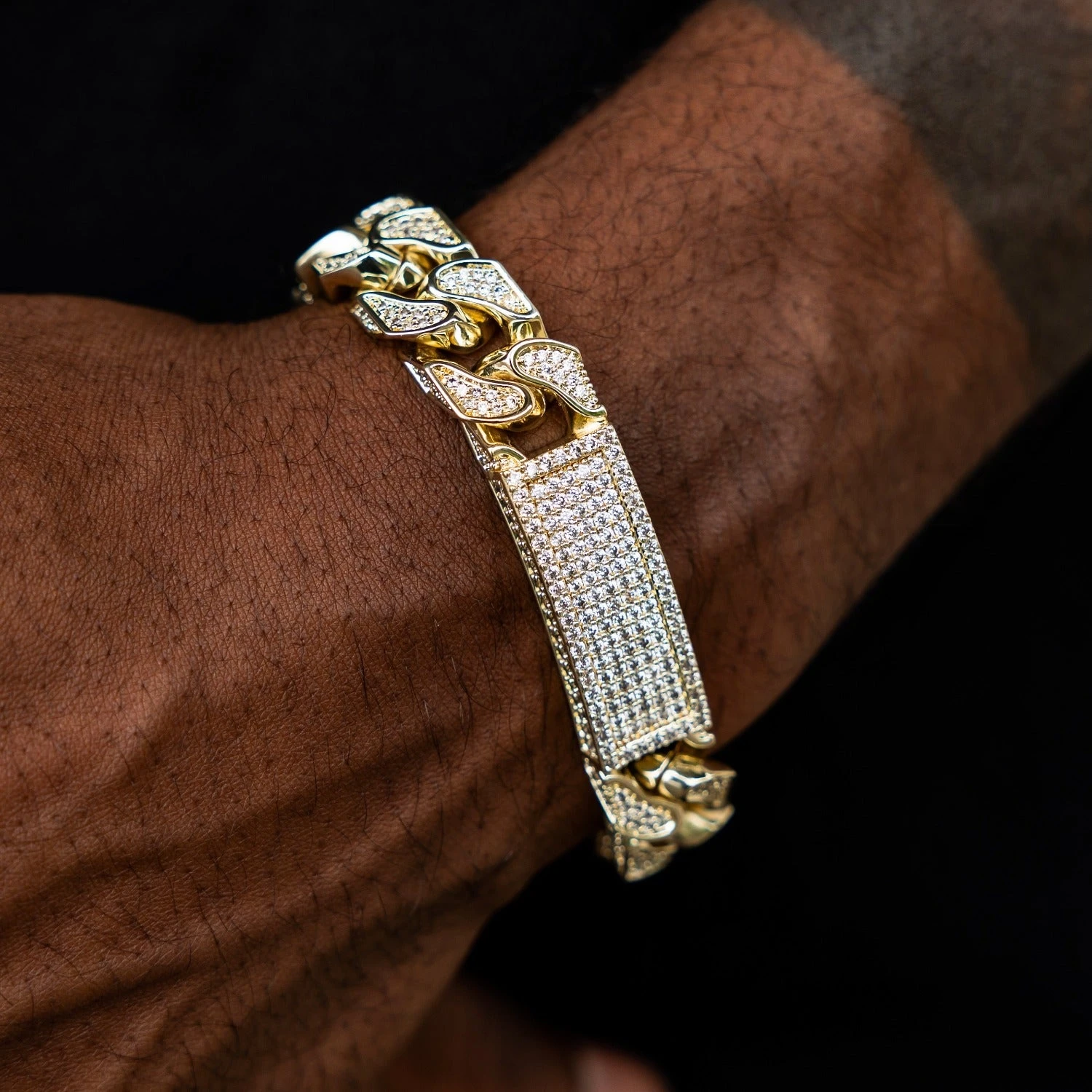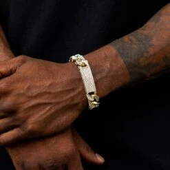 Introducing the exclusive Iced ID Link Bracelet in Yellow Gold. This striking statement piece features an iced out ID plate centered between 12mm pave Cuban links and our signature GLD clasp. Elevate your fit with this 18k Yellow Gold bracelet and pair it with the 12mm Pave Cuban Chain in Yellow Gold for the perfect duo.