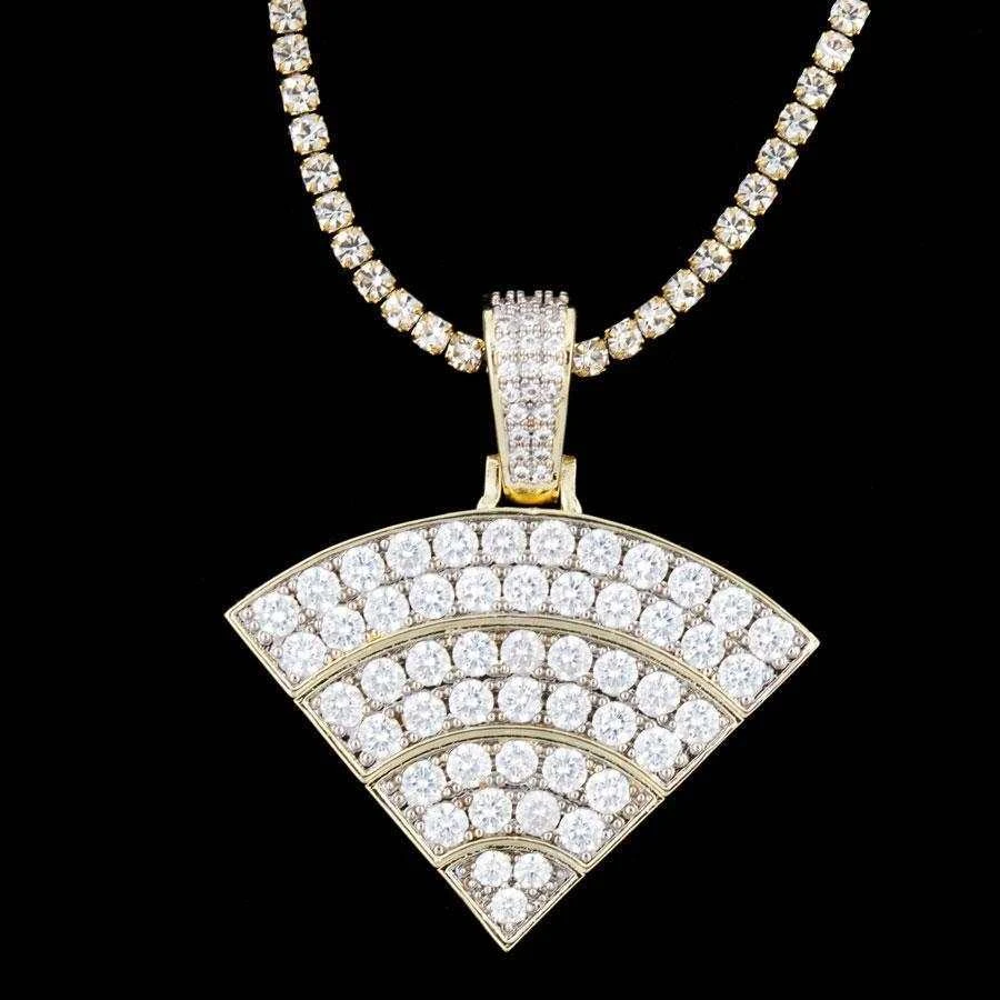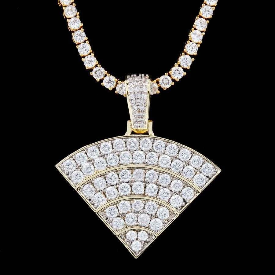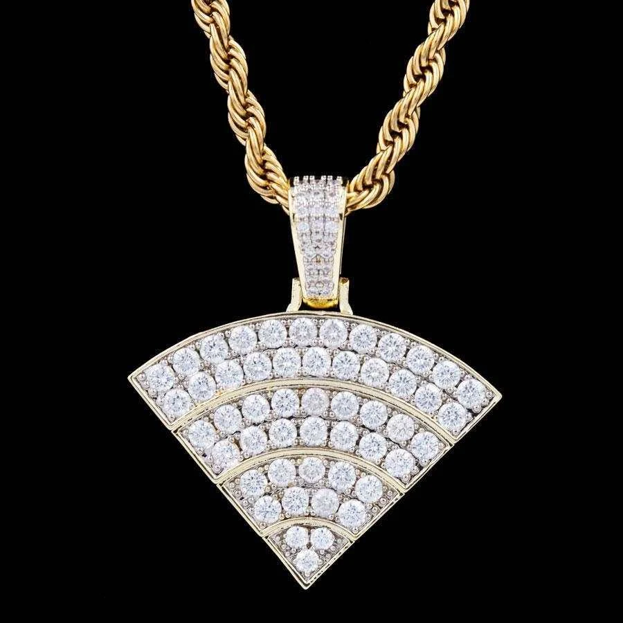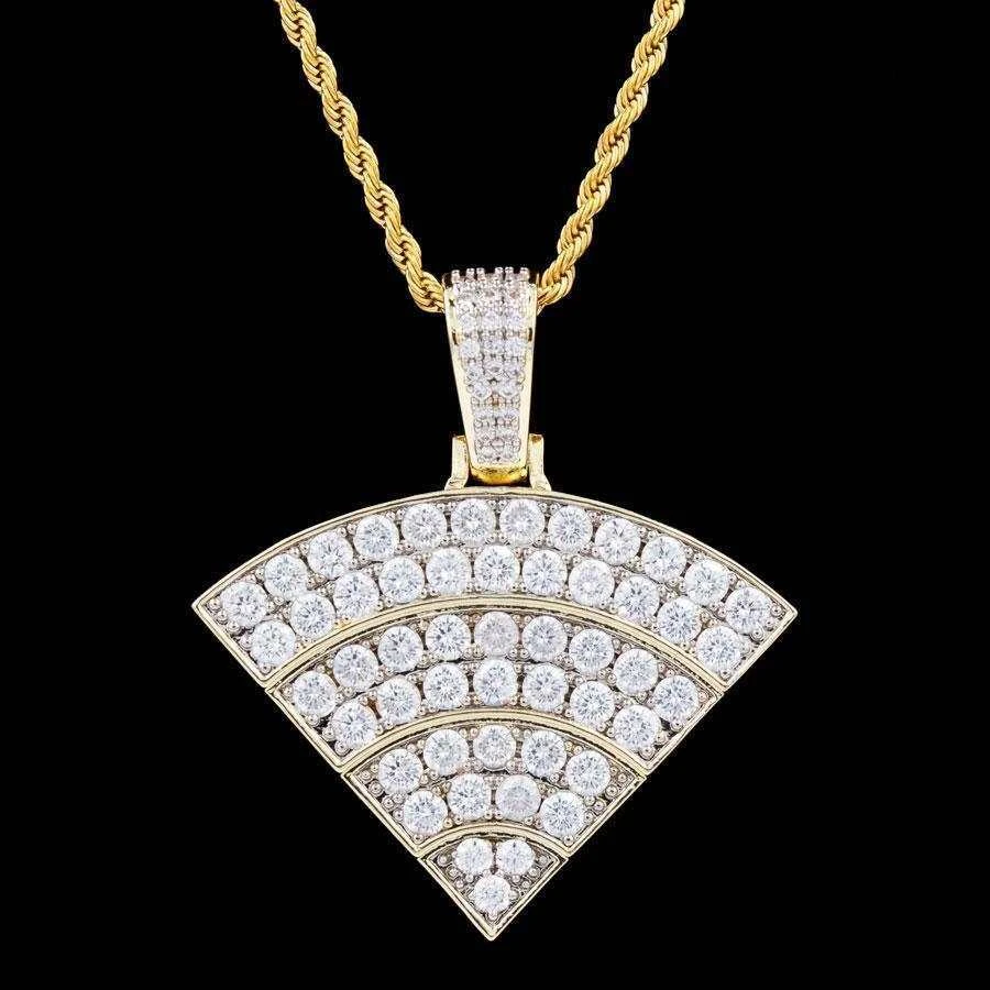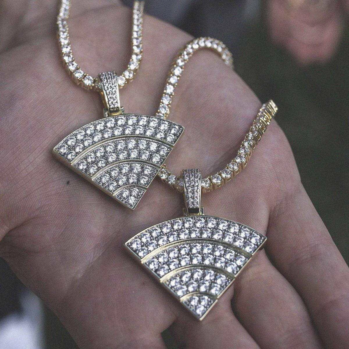 The “Iced Wifi” pendant has been crafted with hand-set, multi-layered round cut stones, for an unparalleled shine.