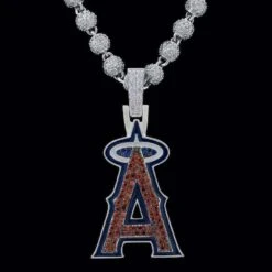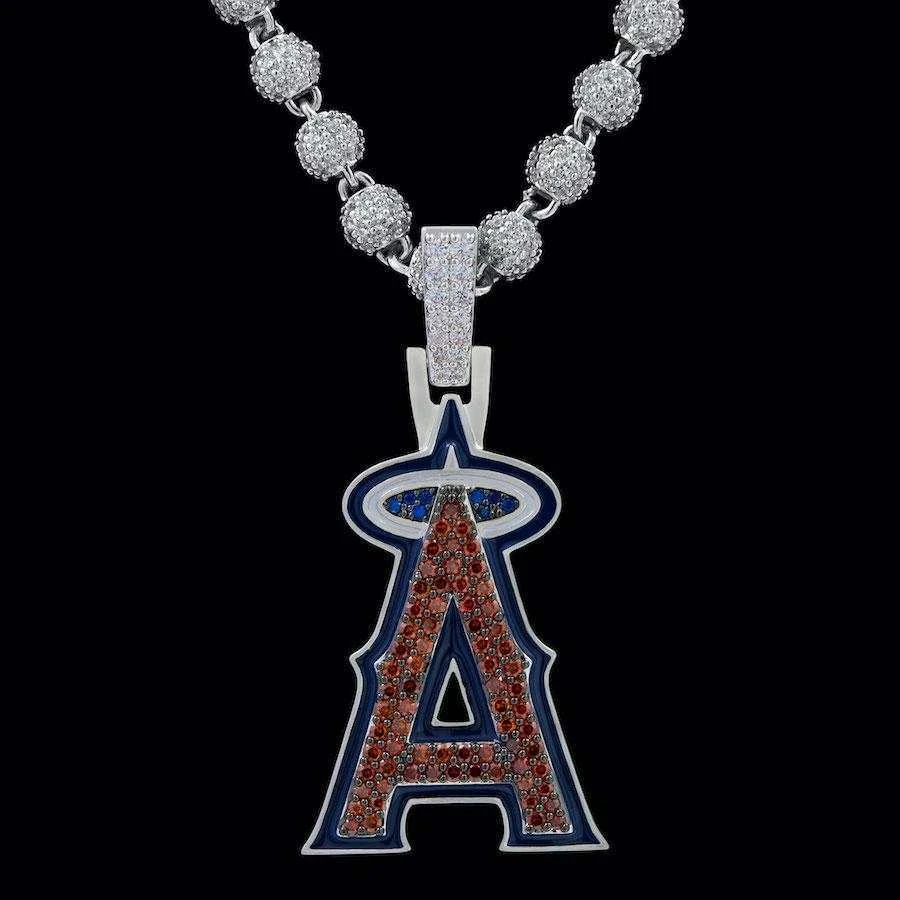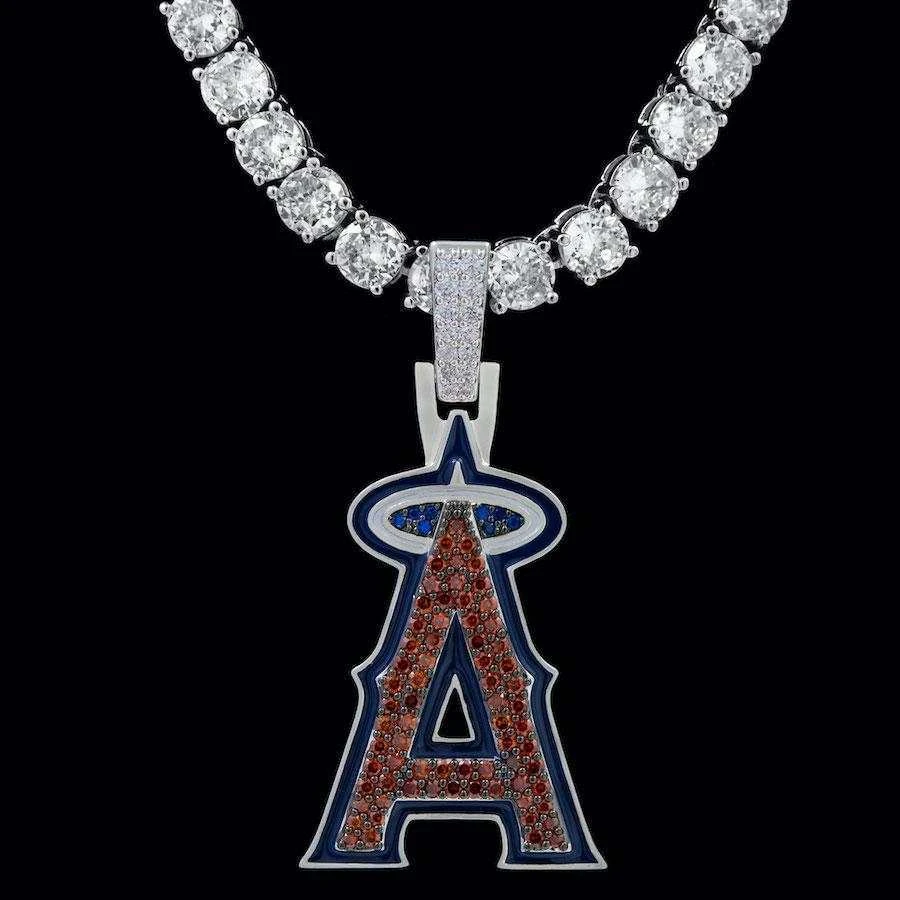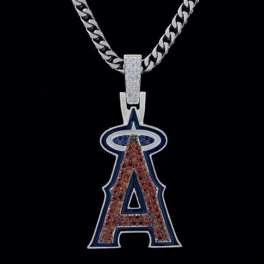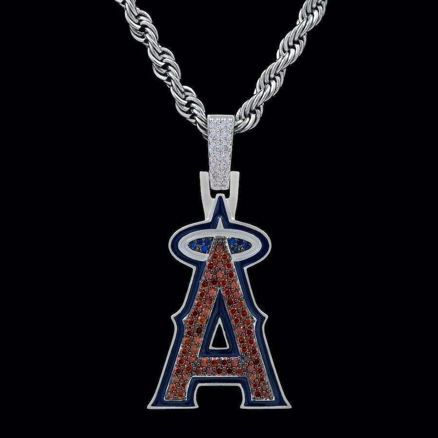 GLD has teamed up with the MLB to introduce the official MLB Team Pendants. This piece was meticulously crafted with red hand-set stones and blue enamel to accurately depict the logo of the Los Angeles Angels. Rep your squad with the official logo pendant of the Los Angeles Angels!