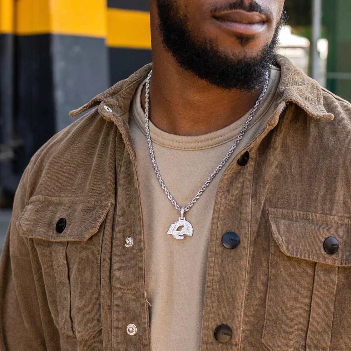 GLD has teamed up with the National Football League to introduce the official NFL Team Pendants. This piece was meticulously crafted with 14k white gold and clear hand-set stones to accurately depict the logo of the Rams. Flex this NFL season with the official pendant of the Los Angeles Rams.