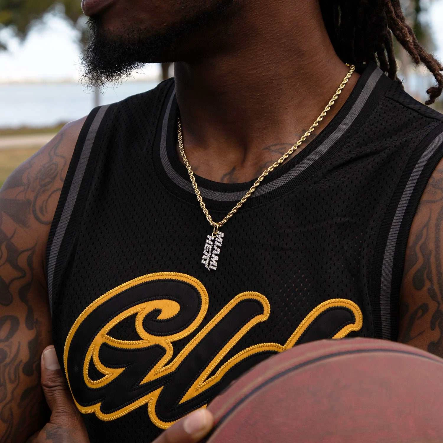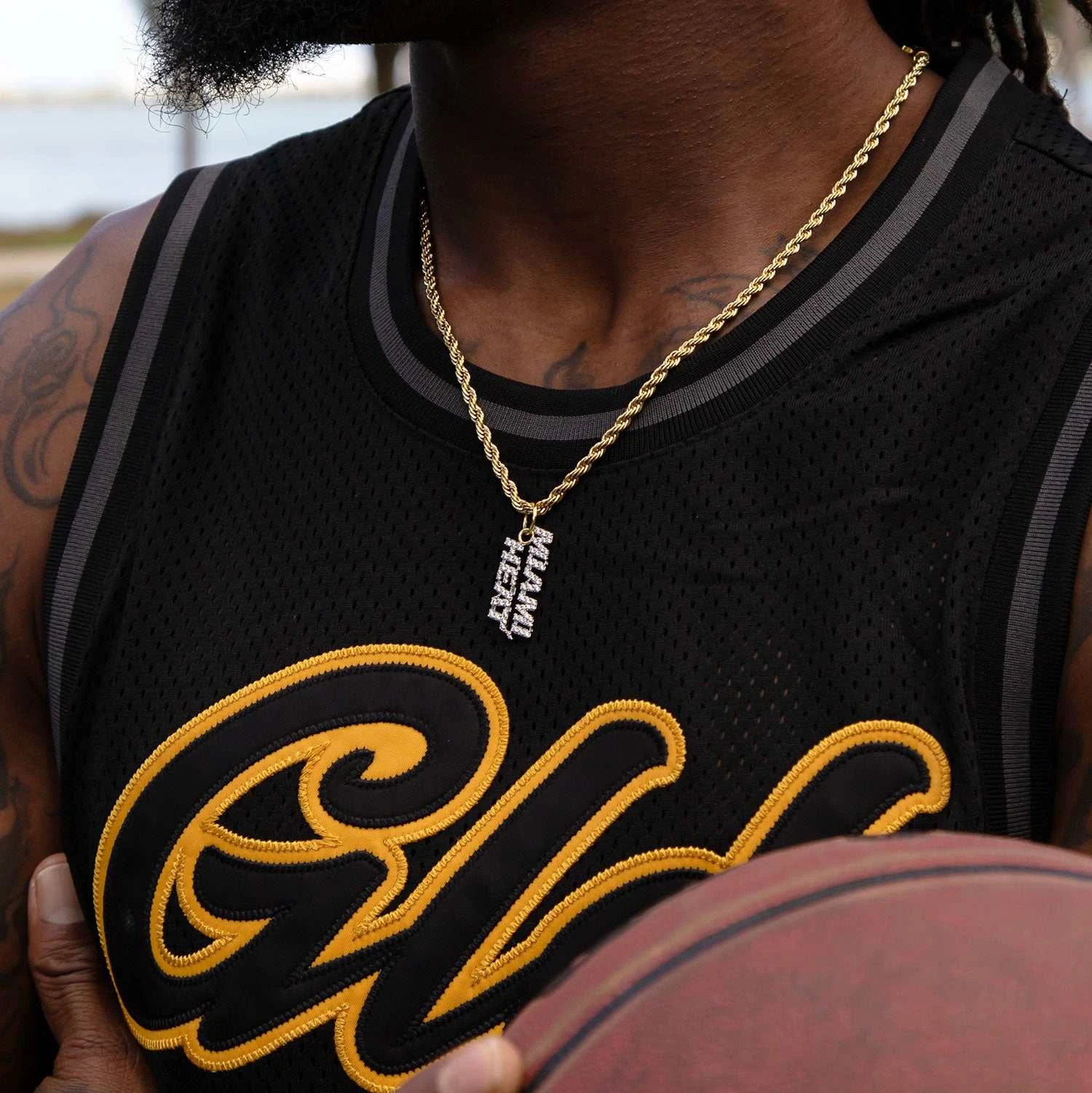GLD has teamed up with the National Basketball Association to introduce the official NBA Team Wordmark Pendants. Finished in 18k Yellow Gold plating, this piece was meticulously crafted with hand-set stones to spell out “Miami Heat” in their signature font. Pair this with the 4mm Rope Chain in Yellow Gold and join the Heat Nation!