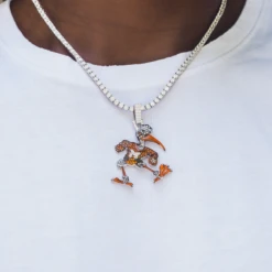 GLD has teamed up with the National Collegiate Athletic Association to introduce the official NCAA Team Pendants. This 14k White Gold piece was meticulously crafted with hand-set stones and orange enamel to accurately depict the Hurricanes mascot. Rep your squad with the official pendant of Sebastian the Ibis. Go Canes!