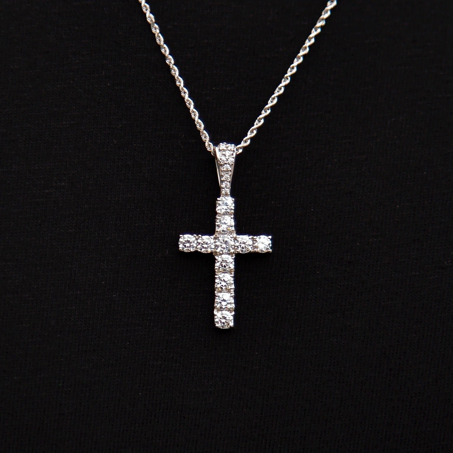 The Diamond Cross exemplifies elite craftsmanship and attention to detail, making it one of our most popular pieces. This micro-sized pendant now in white gold is sleek and will accentuate any fit.