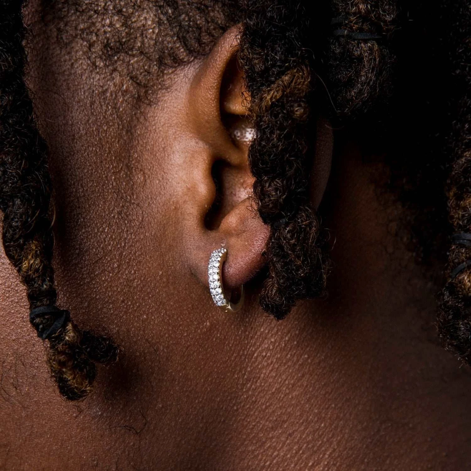 Introducing the “Micro Double Row Huggie Earrings in Yellow Gold” these small hoops are iced out. This is a great pair of earrings to style on those nights out with the boys when you want to rock a fully iced out look. You can feel confident rocking these hoops all summer long since they are water proof and sweat proof. Paired with our “GLD Link Chain In Yellow Gold – 8.5mm” you have the perfect match!