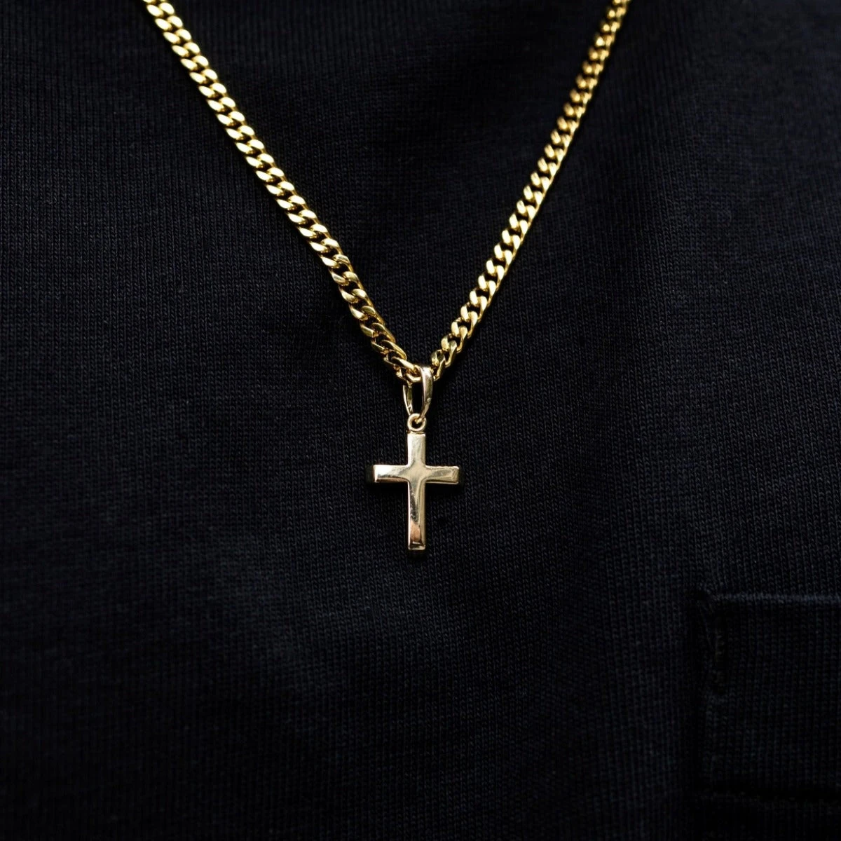 Introducing our “Micro Simple Cross Pendant in Yellow Gold” this tiny gold cross is great for everyday since it’s lightweight and easy to style. This piece matches perfectly with our “Micro Cuban Chain In Yellow Gold” as seen in the images. Pair it with our all new “Polished Cross Round Huggie Earrings In Yellow Gold” to create a classic matching set that you can rock year round.