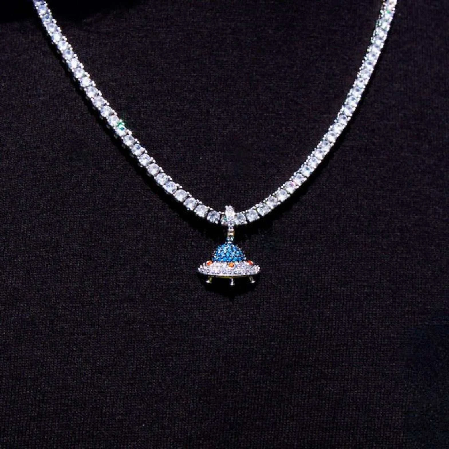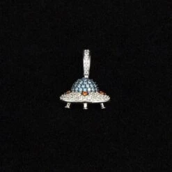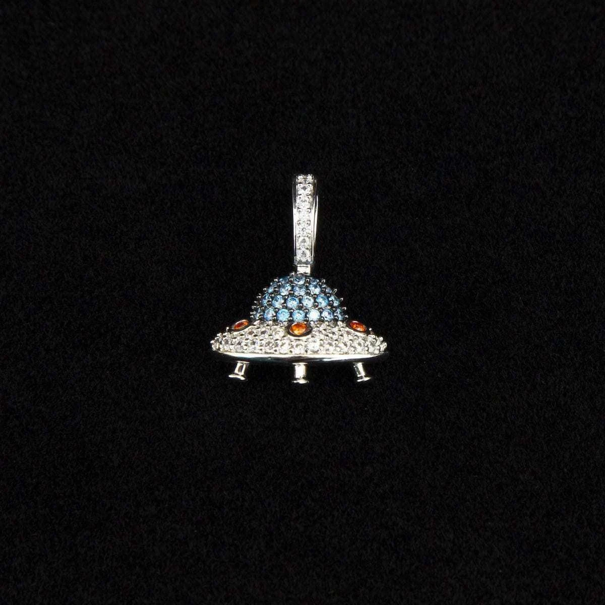 The Micro UFO Pendant is sure to stand out. With blue stones for the dome and red stones to add that extra shine to the iced out saucer. This unidentified flying object is sure to be your go to piece this season. Boss up and flex with the GLD gang!