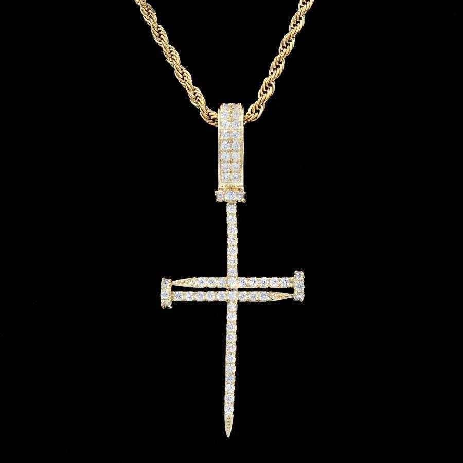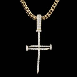 The Nail Cross, also known as “The Cross of Suffering,” is detailed with larger CZ Stones, intricately hand-placed to give the pendant a shine that will stand out from the crowd.