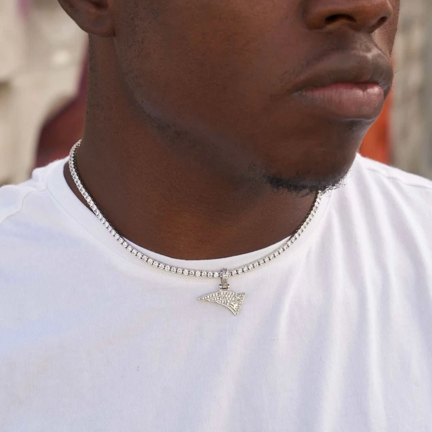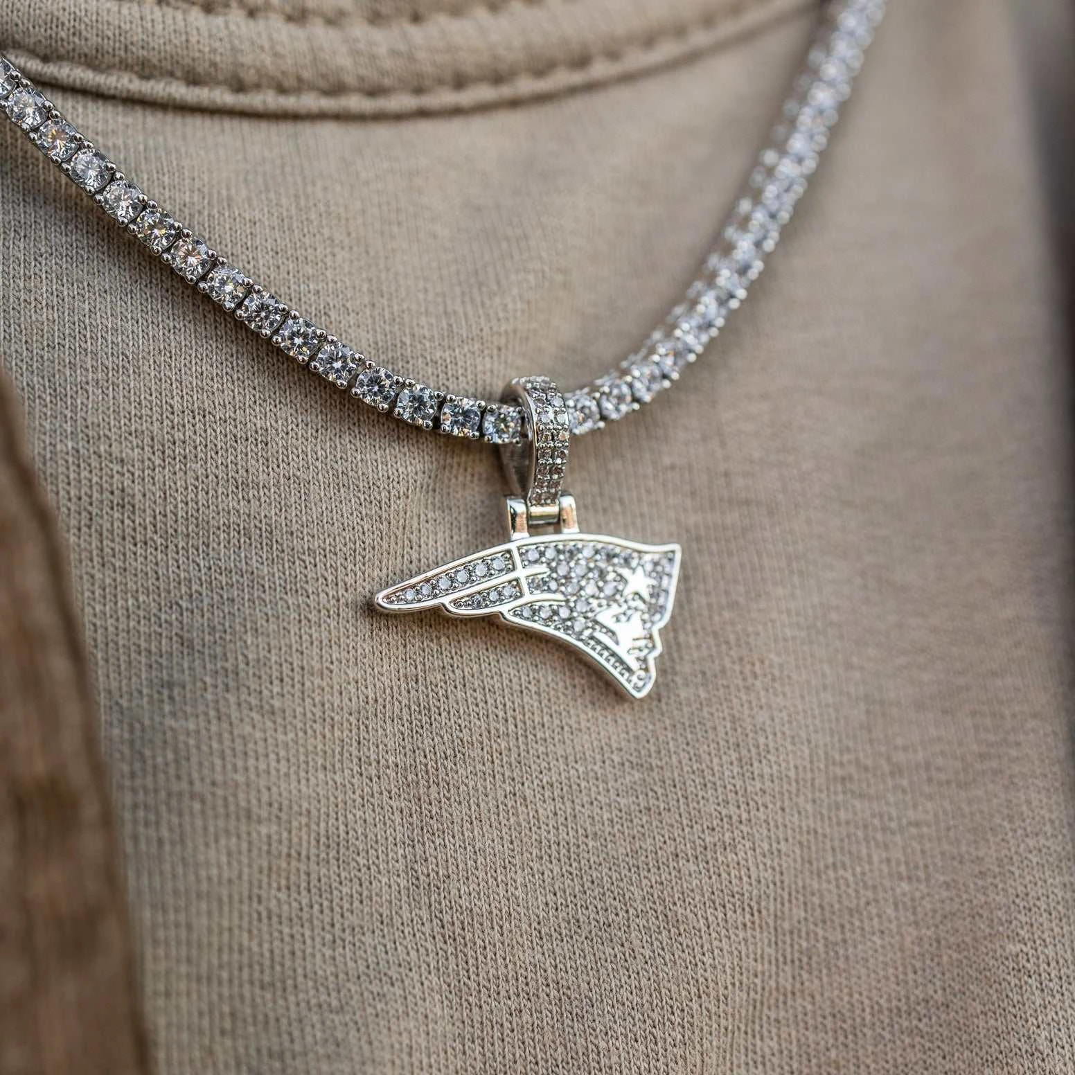 GLD has teamed up with the National Football League to introduce the official NFL Team Pendants. This piece was meticulously crafted with 14k white gold and clear hand-set stones to accurately depict the logo of the Patriots. Flex this NFL season with the official pendant of the New England Patriots.