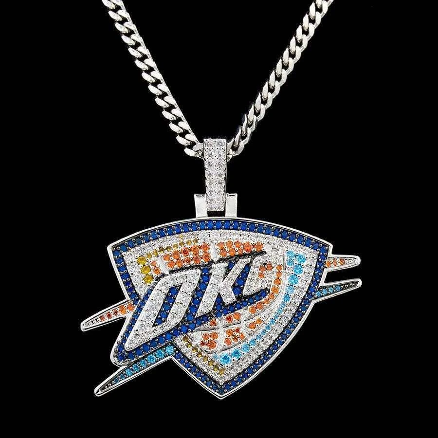 GLD has teamed up with the NBA to introduce the official NBA Team Pendants. This piece was meticulously crafted with multi-colored stones to accurately depict the logo of the Oklahoma City Thunder. Flex this NBA season with your official team pendant.