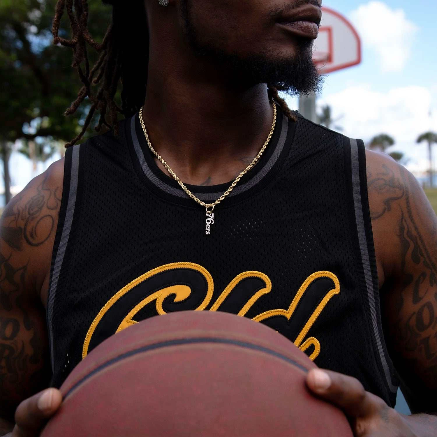 GLD has teamed up with the National Basketball Association to introduce the official Philadelphia 76ers Wordmark Pendants. Finished in 18k Yellow Gold plating, this piece was meticulously crafted with hand-set stones to spell out “76ers” in their signature font. Pair this with the 4mm Rope Chain in Yellow Gold and rep the City of Brotherly Love!