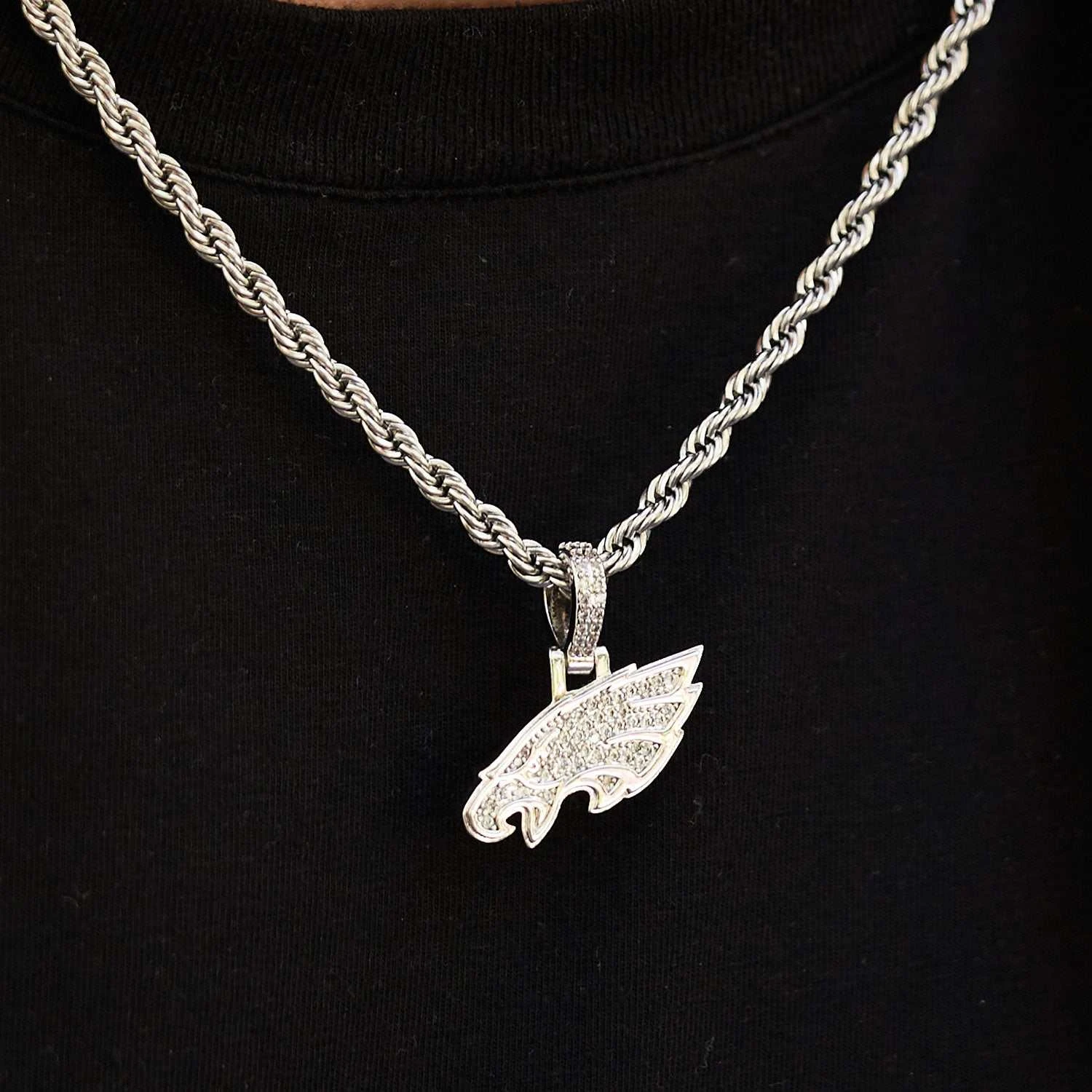 GLD has teamed up with the National Football League to introduce the official NFL Team Pendants. This piece was meticulously crafted with 14k White gold and clear hand-set stones to accurately depict the logo of the Eagles. Flex this NFL season with the official pendant of the Philadelphia Eagles.