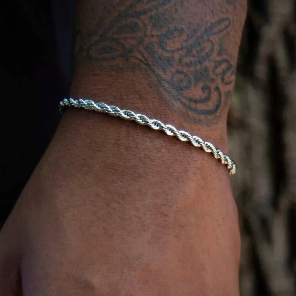 The Rope Bracelet in White Gold- 4mm features a bold yet simple twisted design that can be worn with any fit.