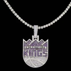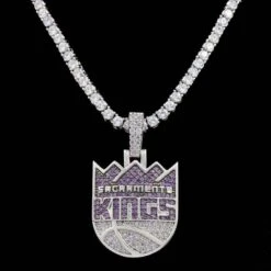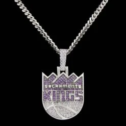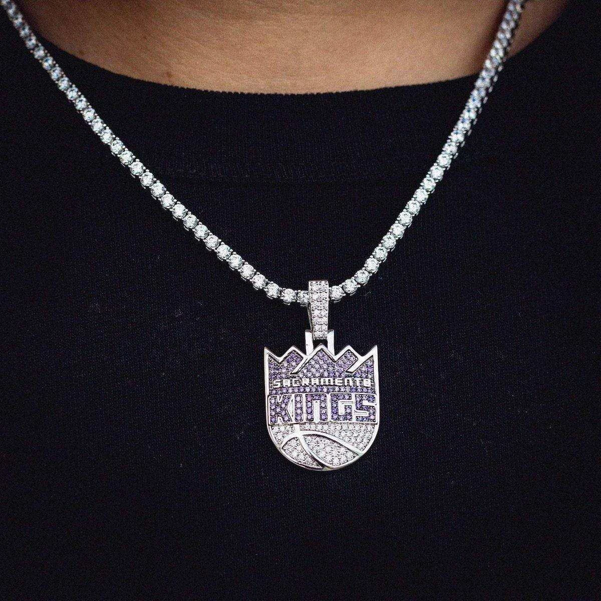 GLD has teamed up with the NBA to introduce the official NBA Team Pendants. This piece was meticulously crafted with blue and purple hand-set stones to give a unique twist to the logo of the Sacramento Kings. Boss up and rep your squad with this hometown favorite.