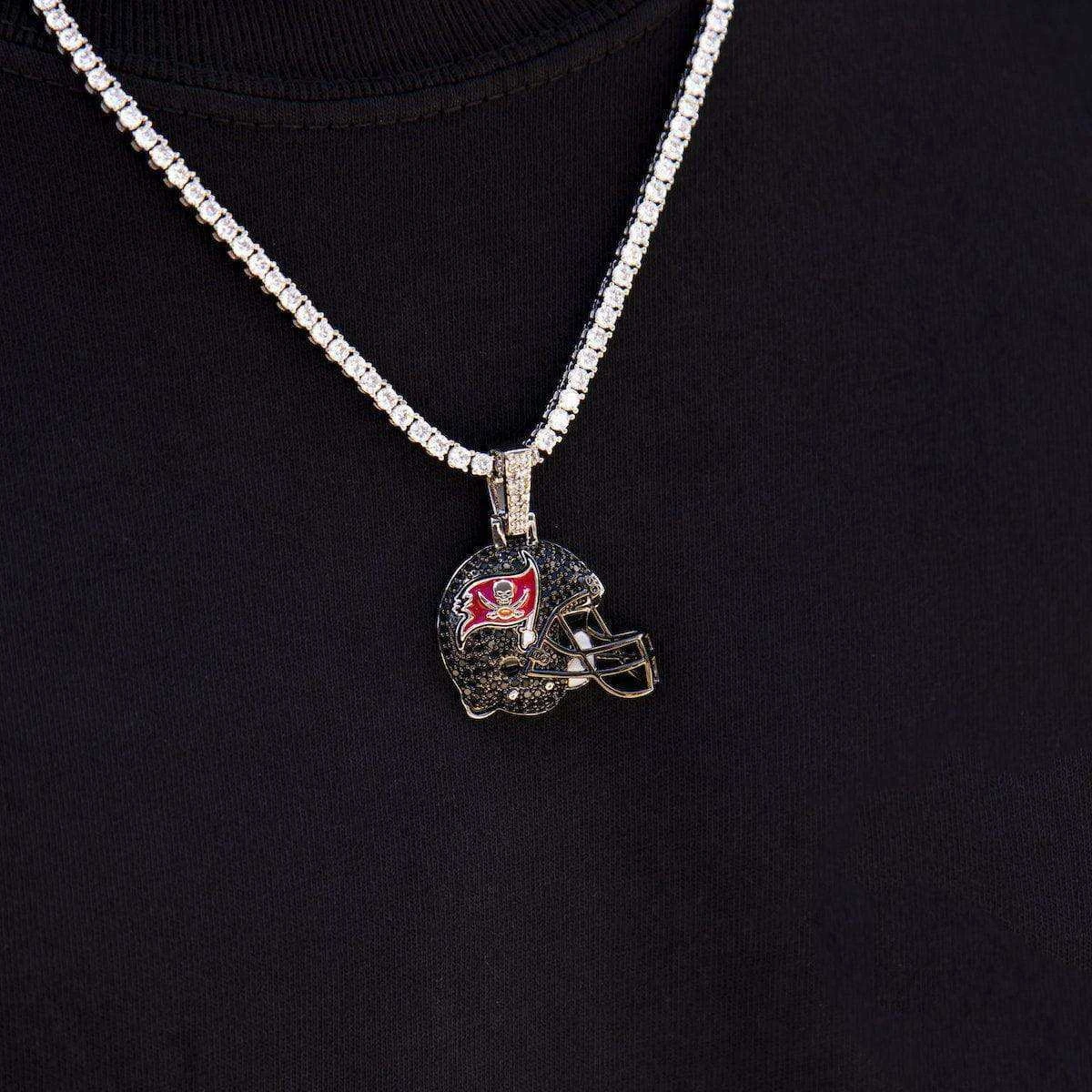 GLD has teamed up with the National Football League to introduce the official NFL Team Helmet Pendants. This piece was meticulously crafted with black hand-set stones and red enamel to accurately depict the logo of the Buccaneers. Flex this NFL season with the official pendant of the LV Super Bowl Champions the Tampa Bay Buccaneers.