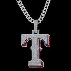 GLD has teamed up with the MLB to introduce the official MLB Team Pendants. This piece was meticulously crafted with clear hand-set stones and blue and red enamel to accurately depict the logo of the Texas Rangers. Rep your squad with the official logo pendant of the Texas Rangers
