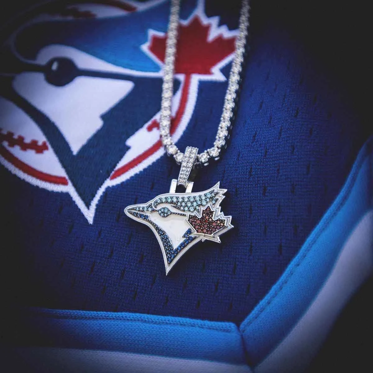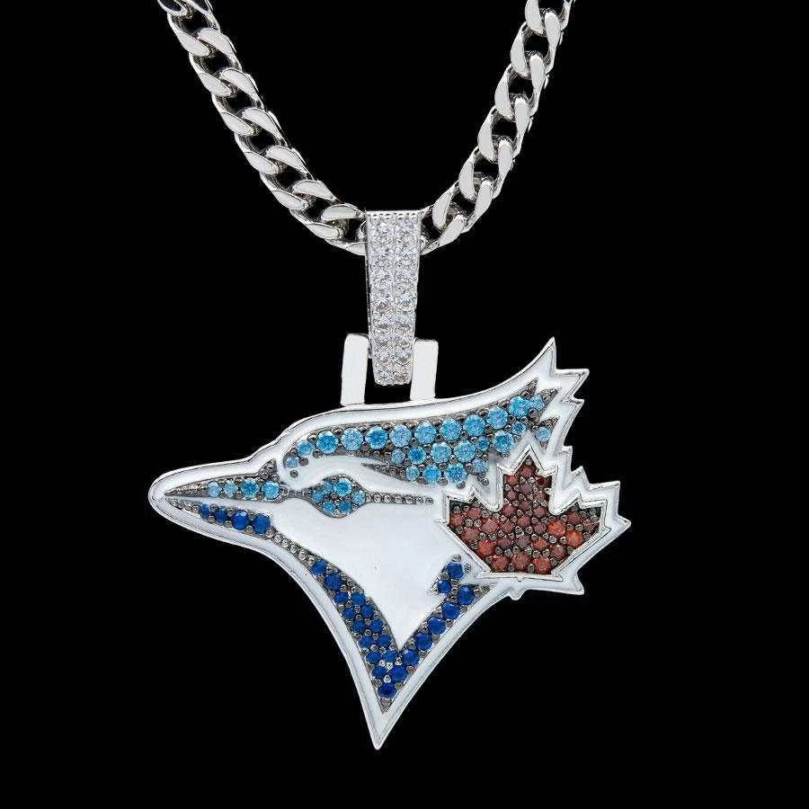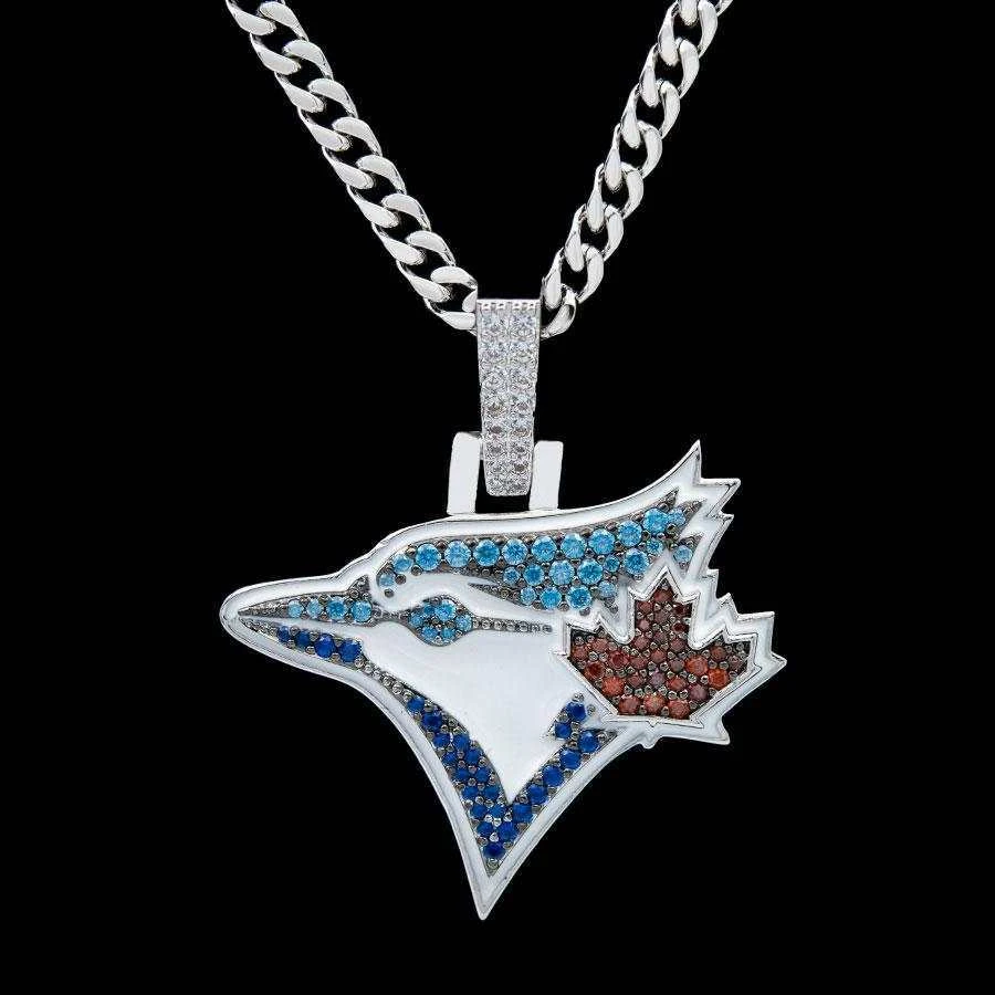 GLD has teamed up with Major League Baseball to introduce the official MLB Team Pendants. This piece was meticulously crafted with blue and red hand-set stones, to accurately depict the iconic logo of the Toronto Blue Jays.